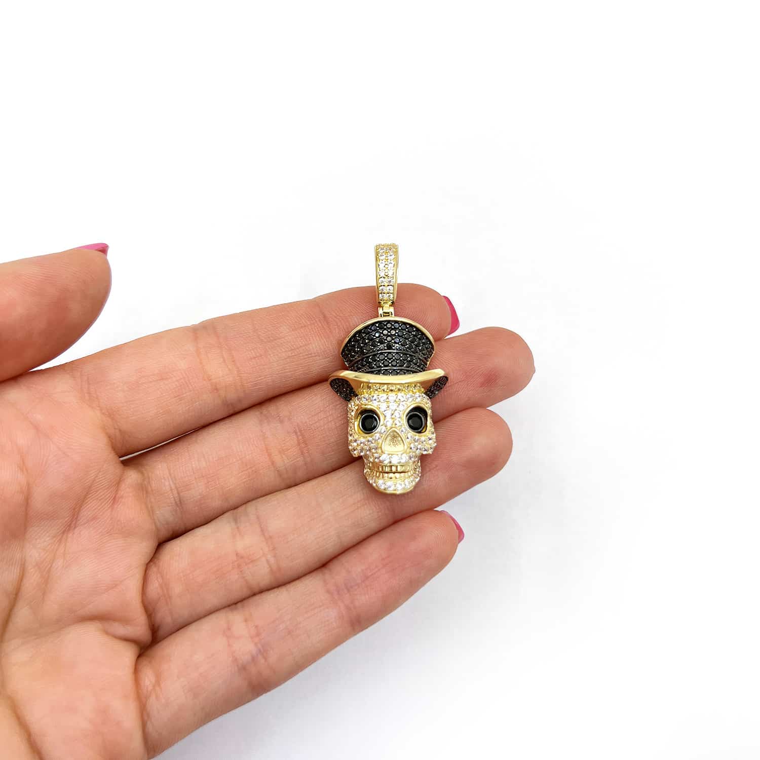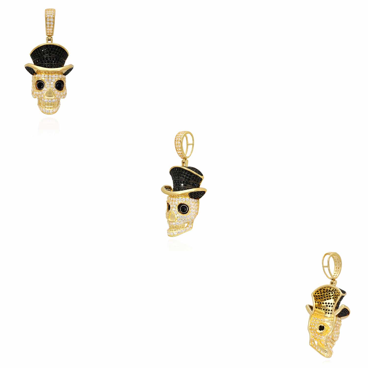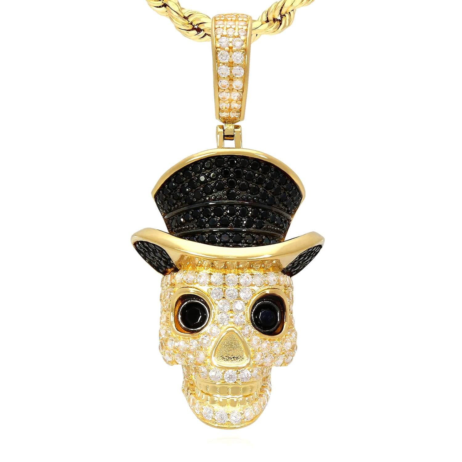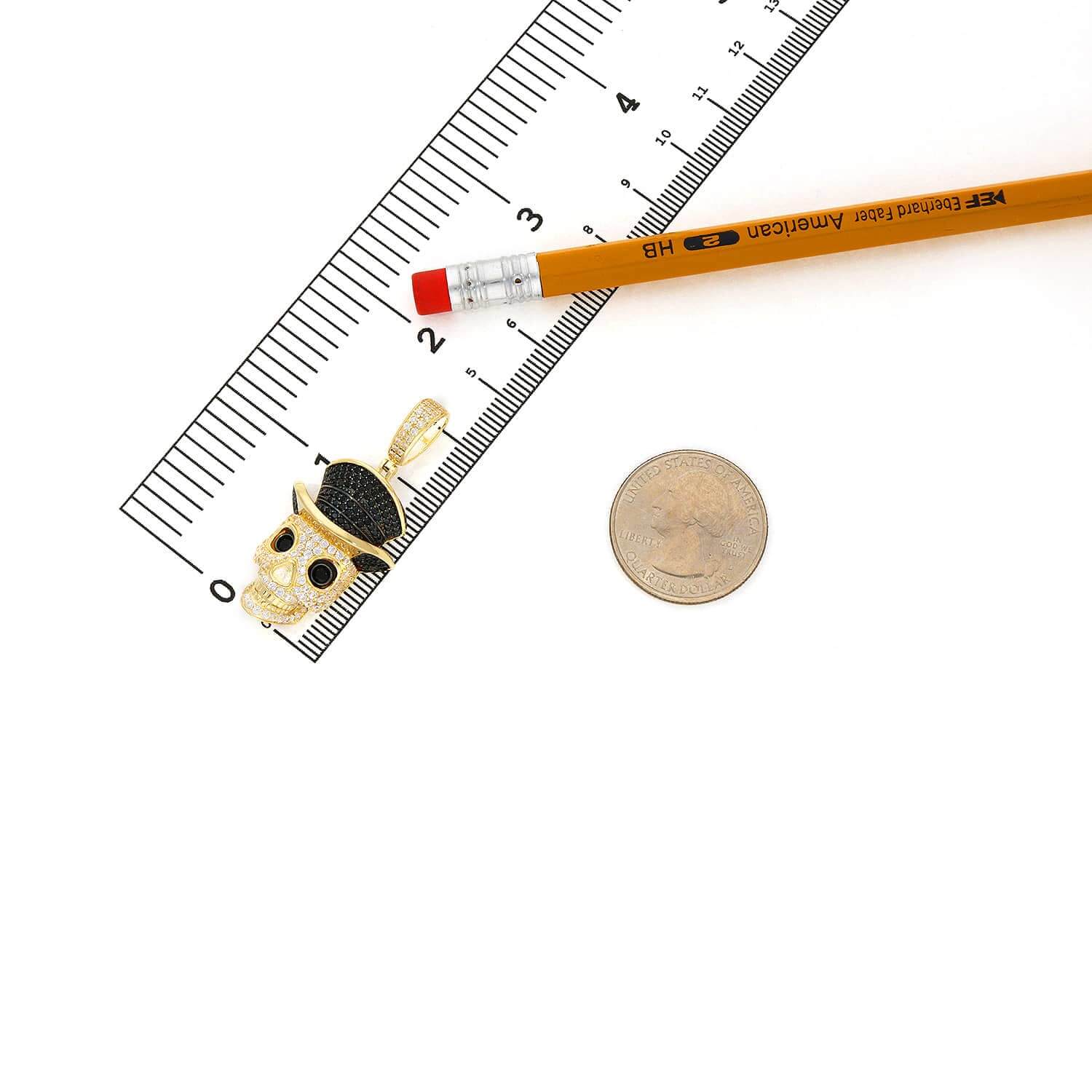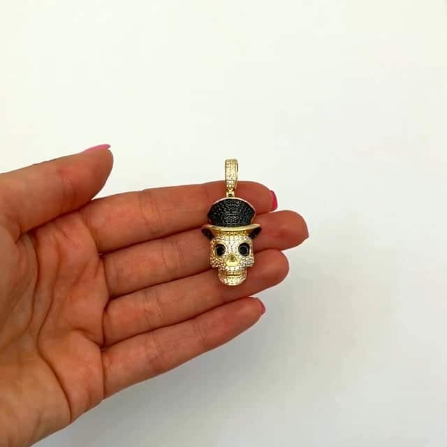 Read full return policy14K Yellow Gold CZ Pave Skull Irish Magician Hat Pendant 1.7"