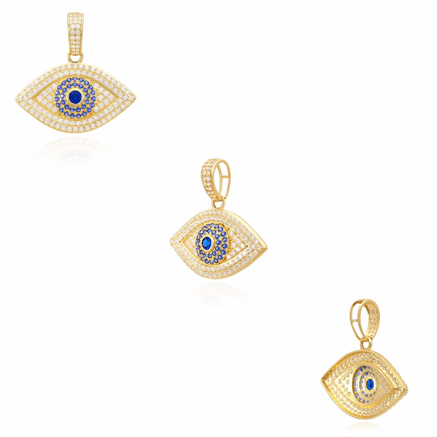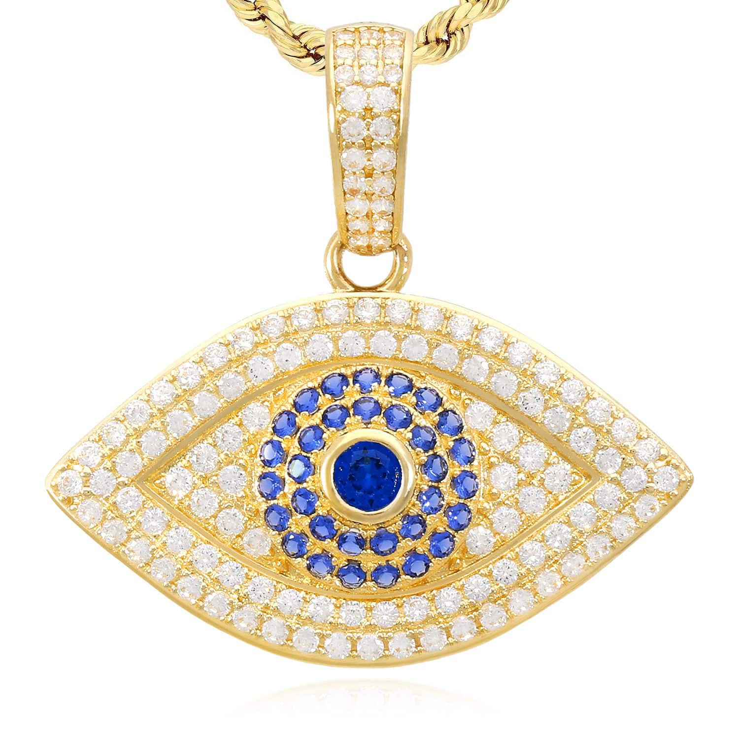 Read full return policy14K Yellow Gold CZ Sapphire Evil Eye Pendant 1.2"