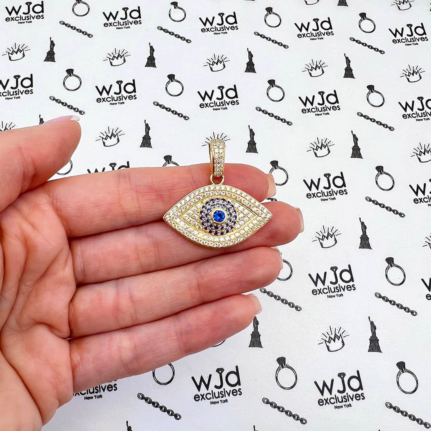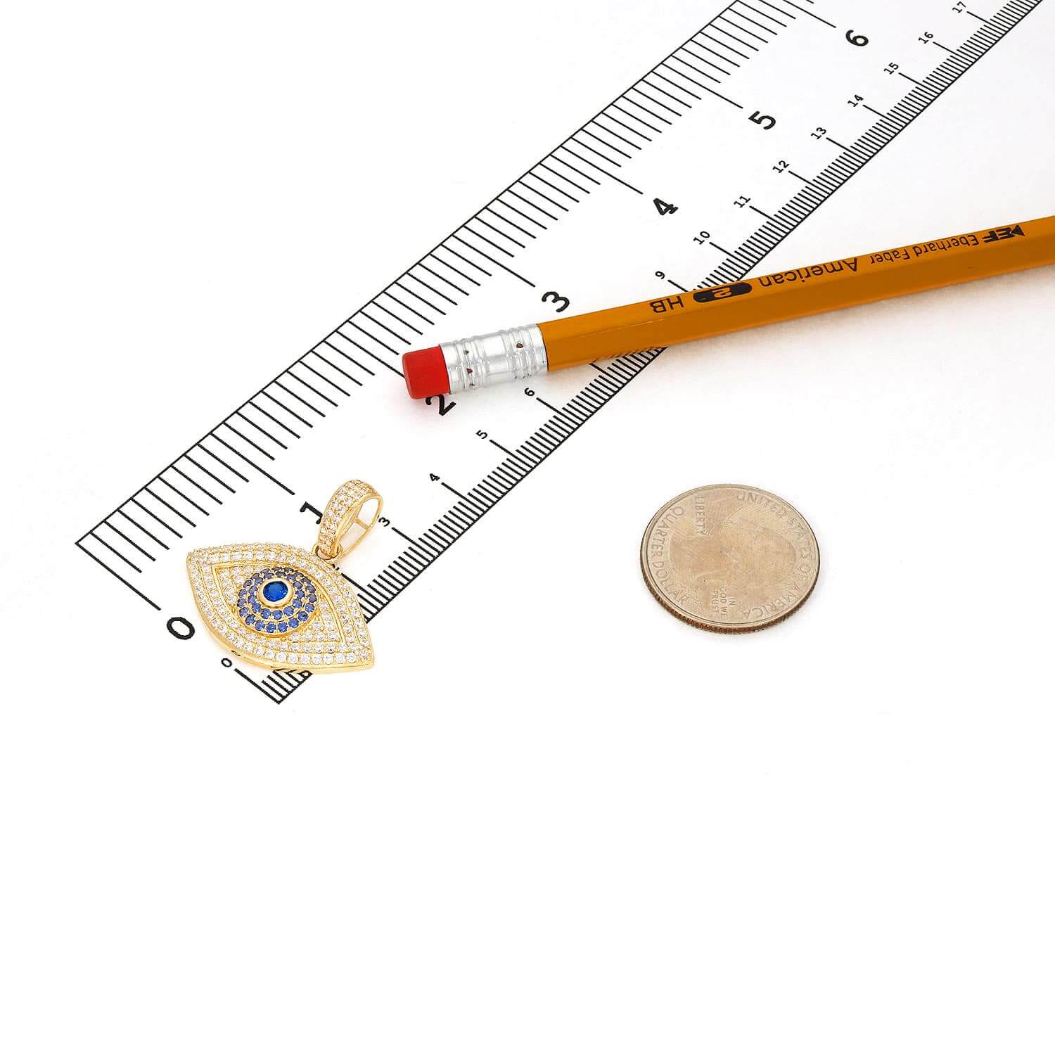 14K Yellow Gold CZ Sapphire Evil Eye Pendant 1.2"Couldn't load pickup availability