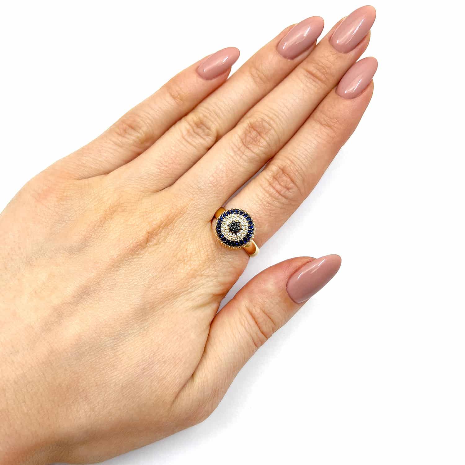 Read full return policy14K Yellow Gold CZ With Sapphire Evil Eye Cocktail Ring