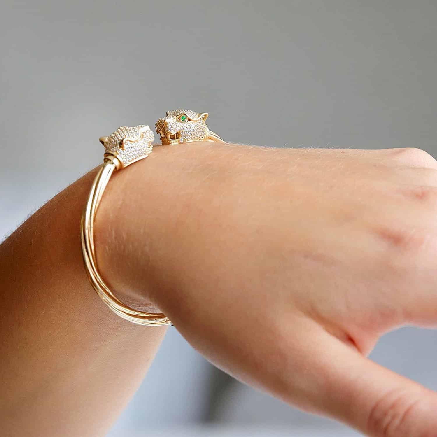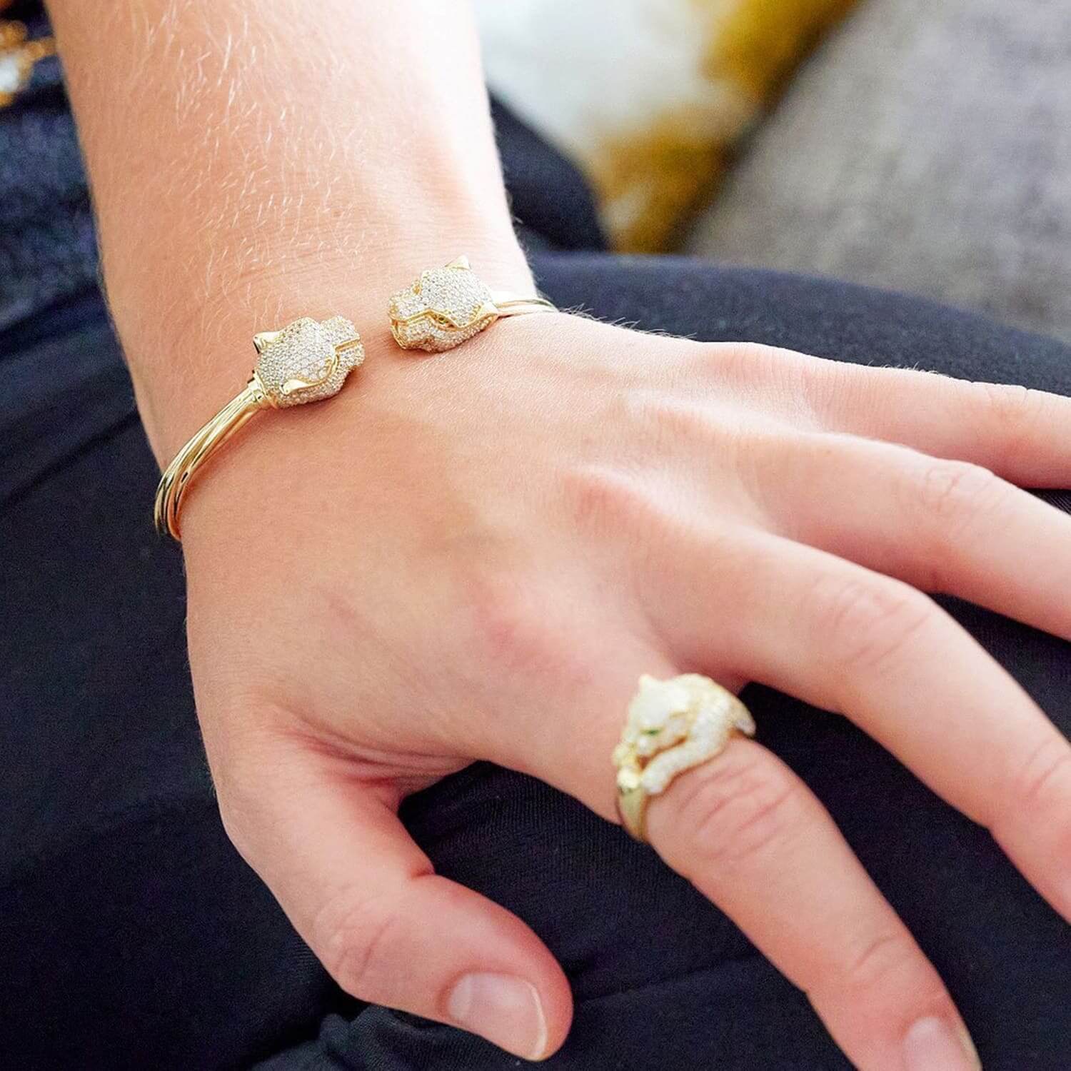 Read full return policy14K Yellow Gold CZ Pave Panther Head Bangle Bracelet 6.75"