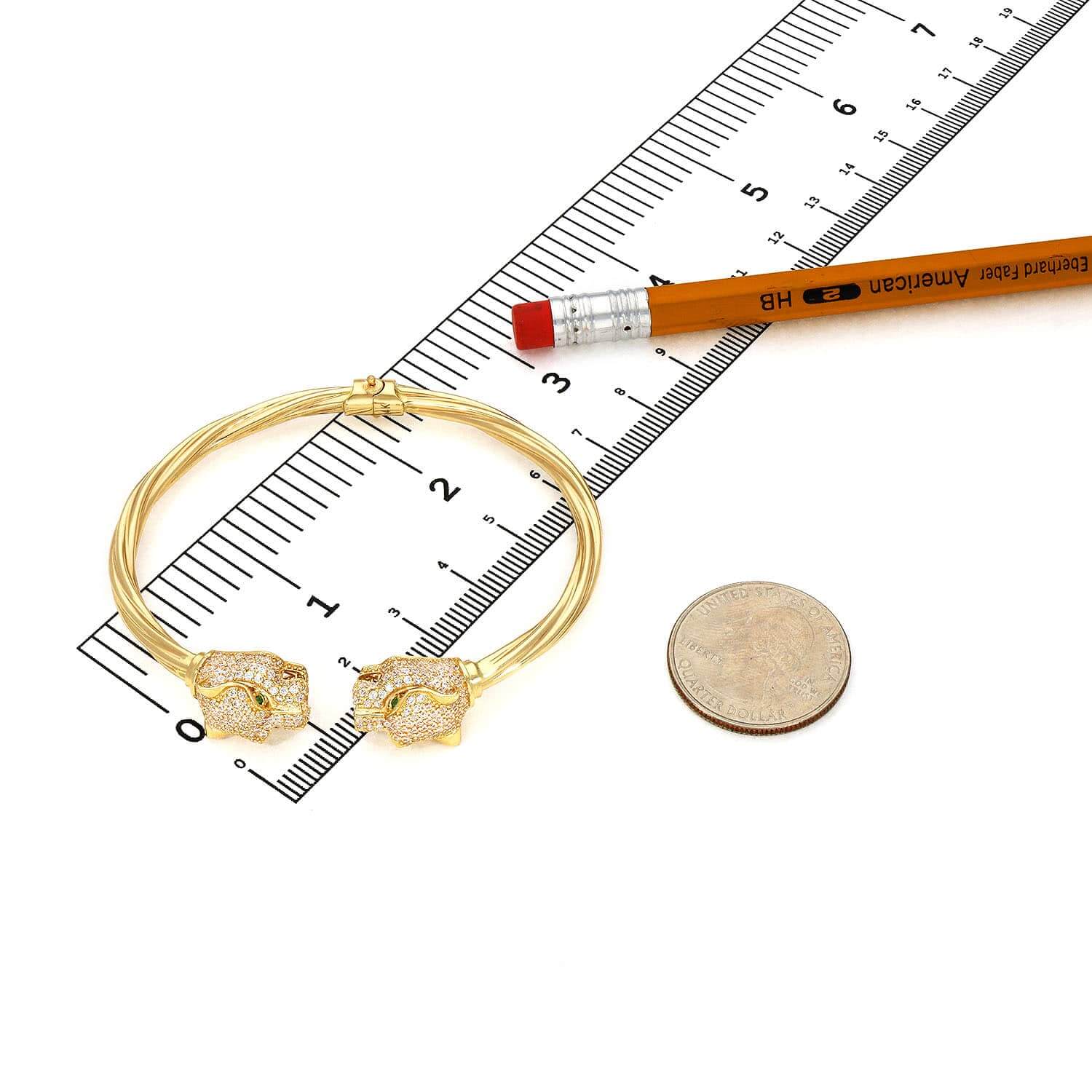 14K Yellow Gold CZ Pave Panther Head Bangle Bracelet 6.75"Couldn't load pickup availability