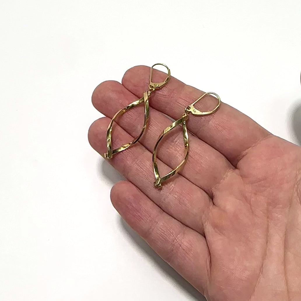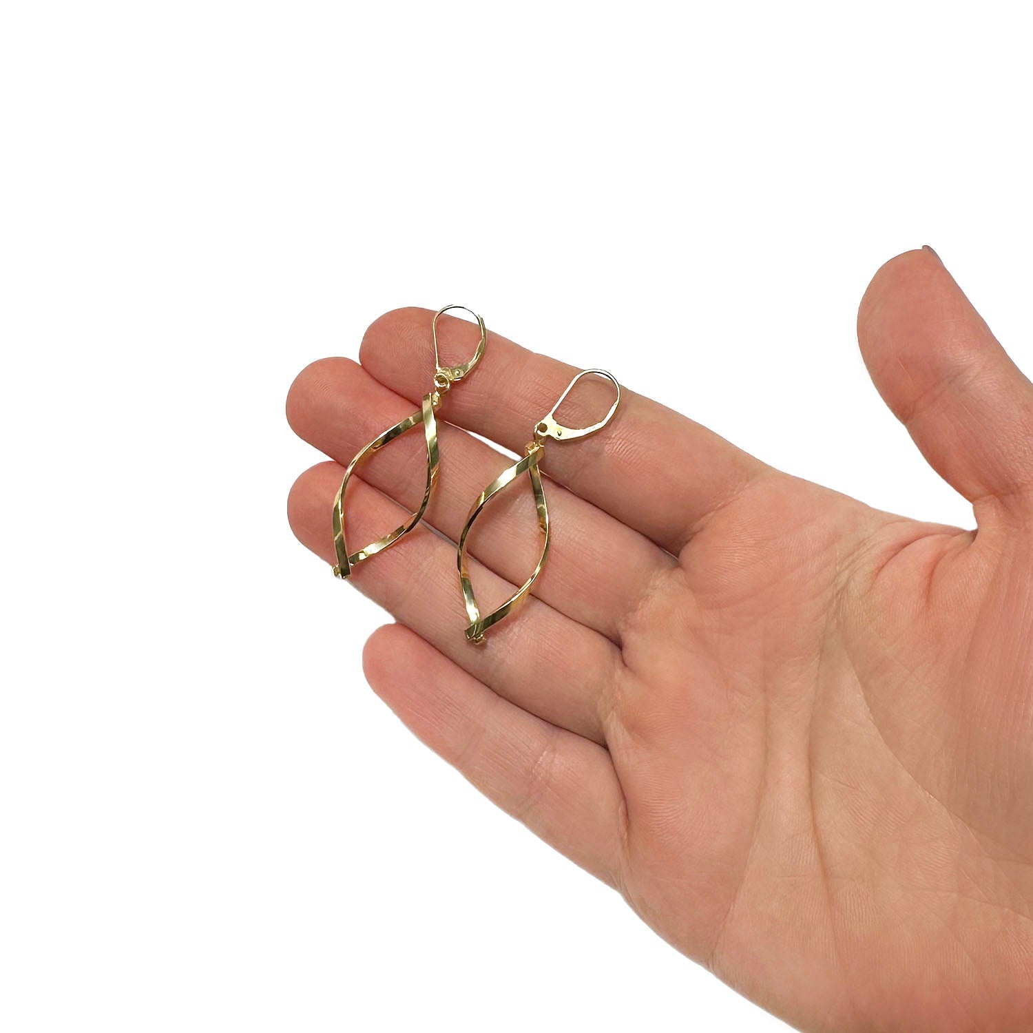 14K Yellow Gold Swirl Leverback Dangle Drop Earrings 50mm
