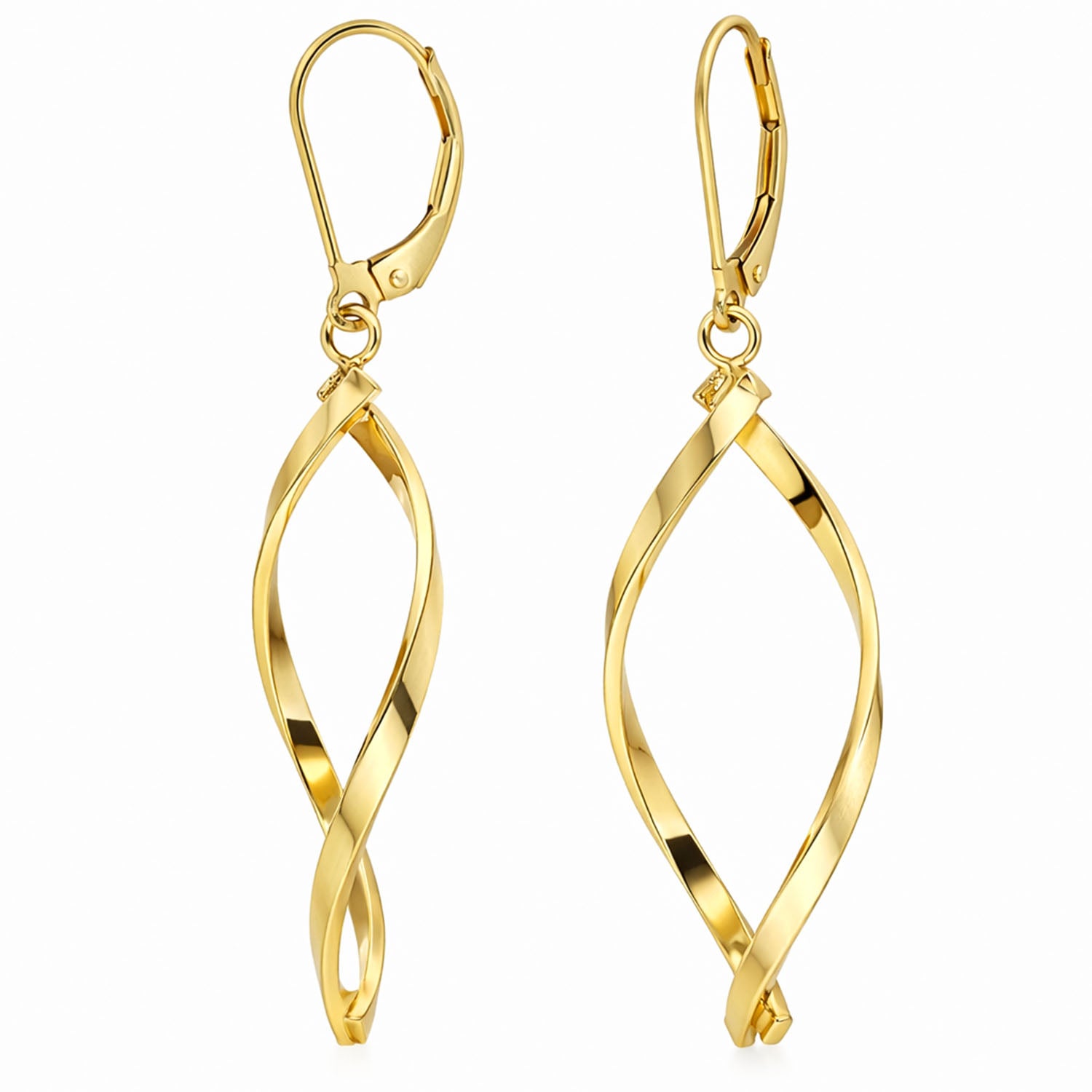 14K Yellow Gold Swirl Leverback Dangle Drop Earrings 50mmCouldn't load pickup availability