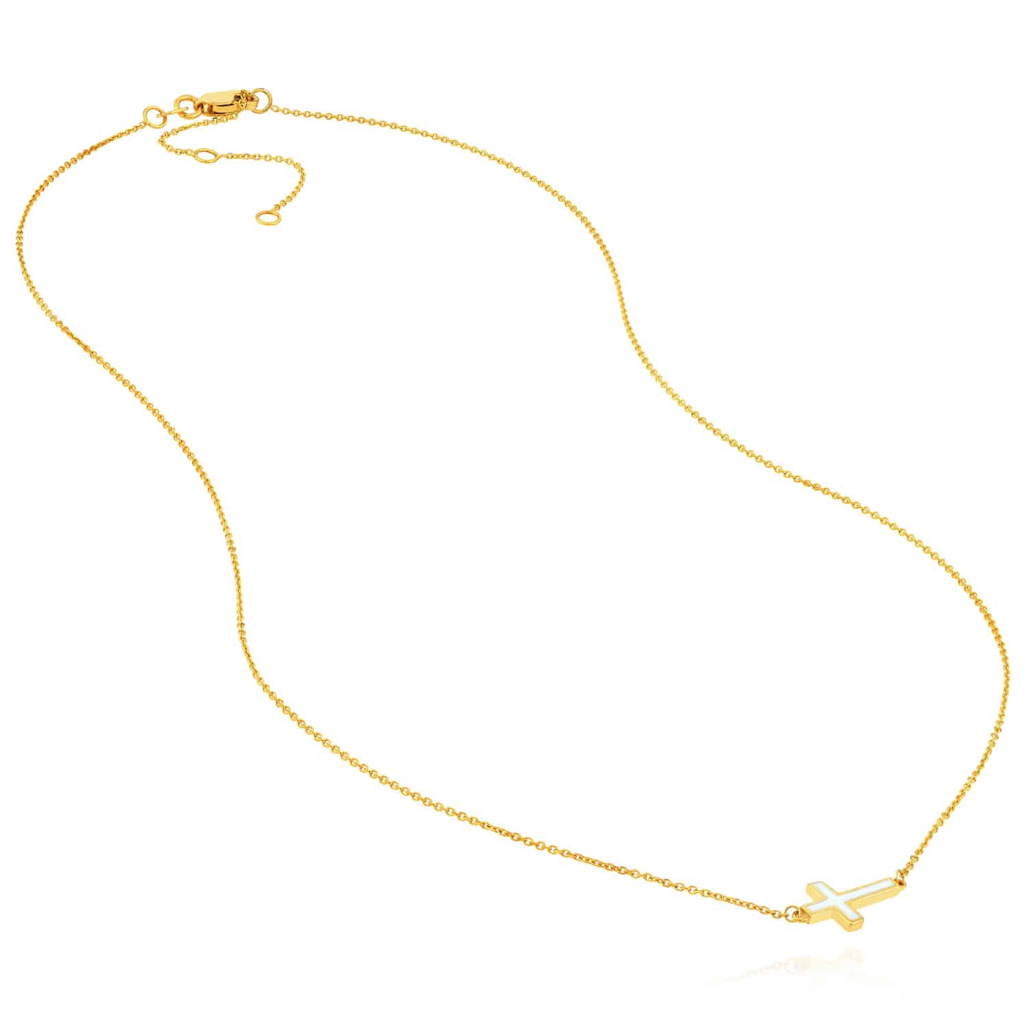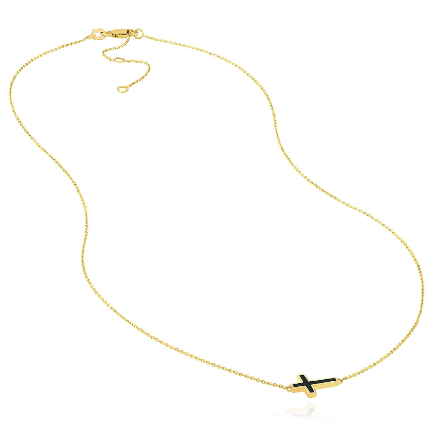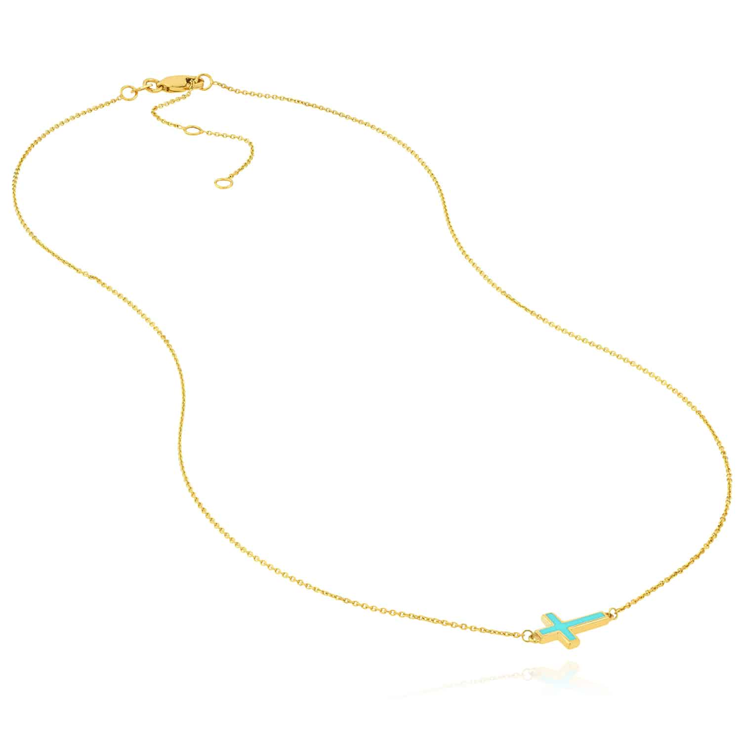 Read full return policy14K Yellow Gold Black White Turquoise Sideways Cross Necklace (Solid Links) 16"-18" Adjustable