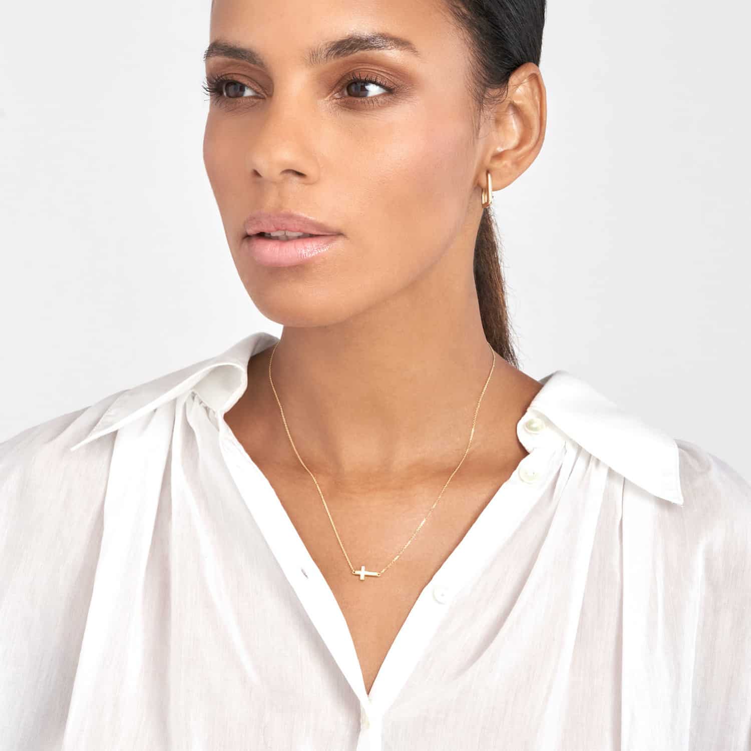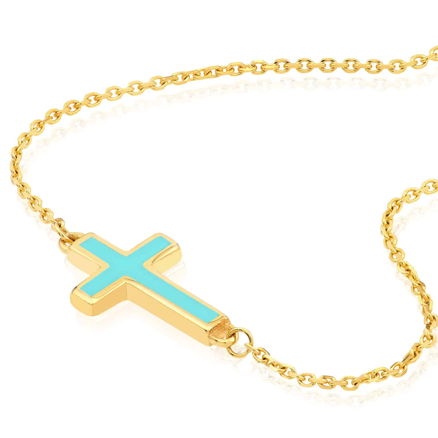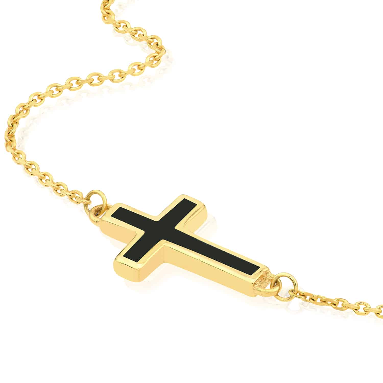 Read full return policy14K Yellow Gold Black White Turquoise Sideways Cross Necklace (Solid Links) 16"-18" Adjustable