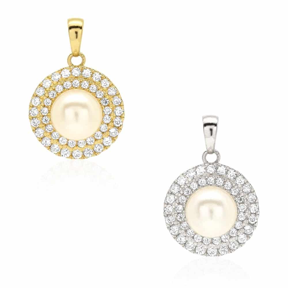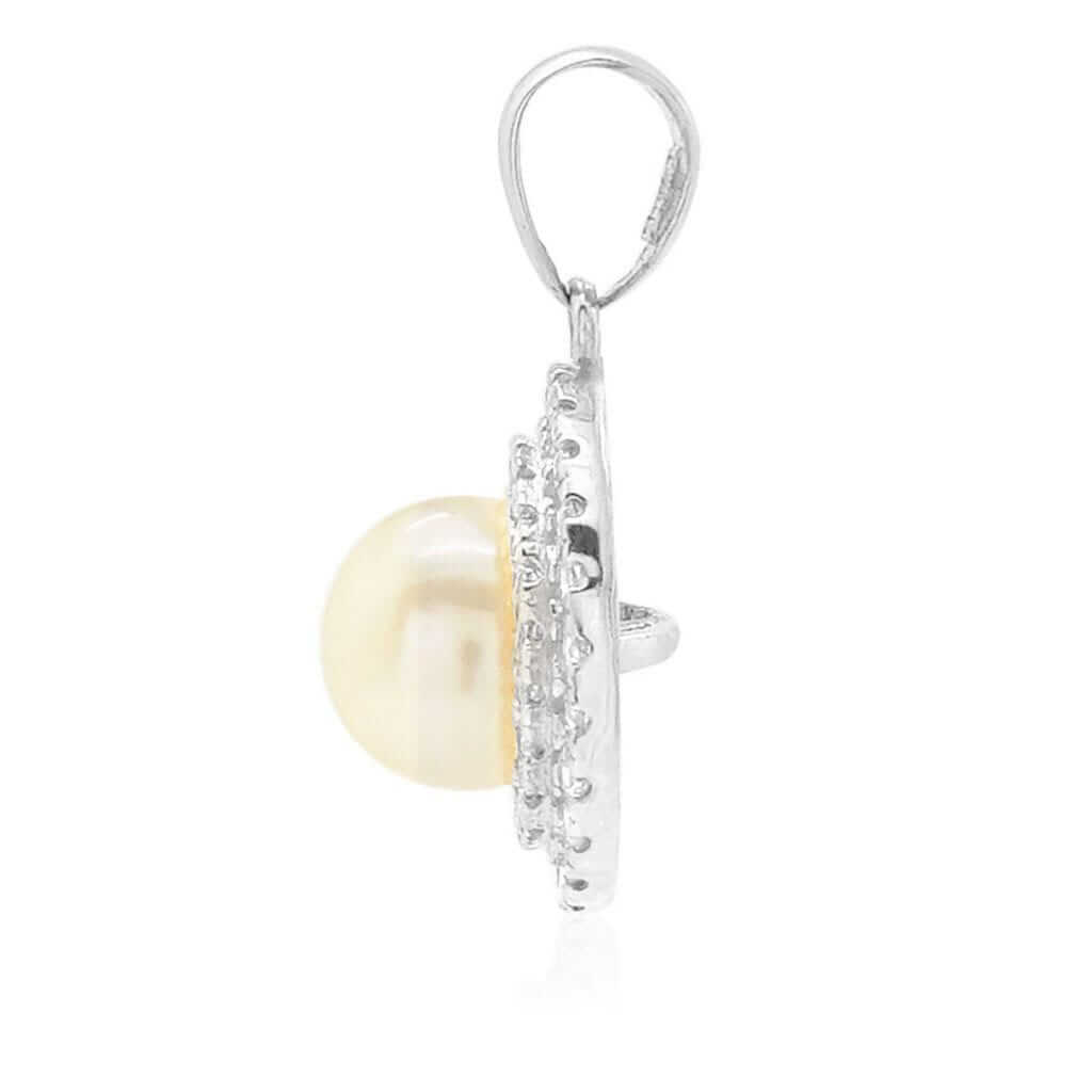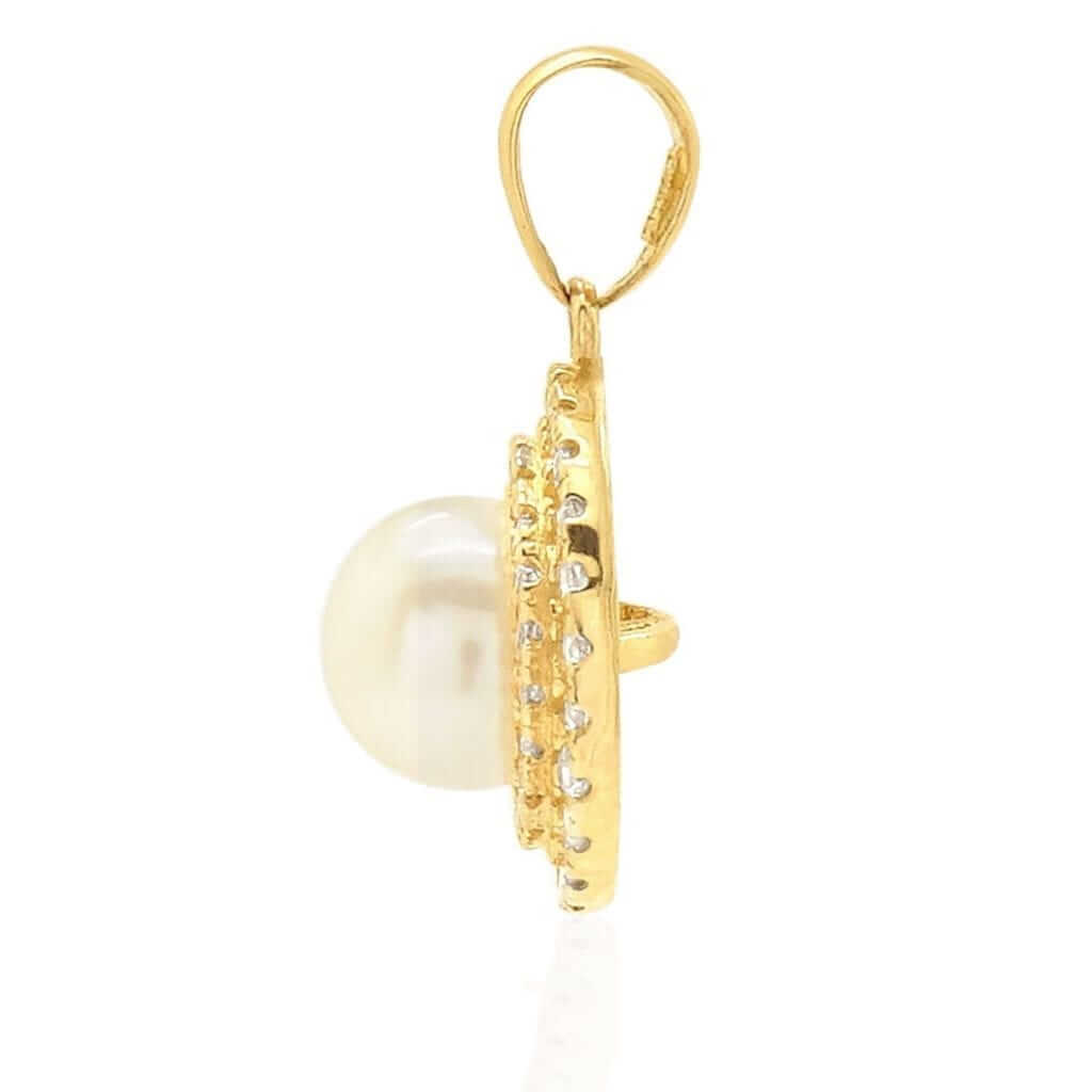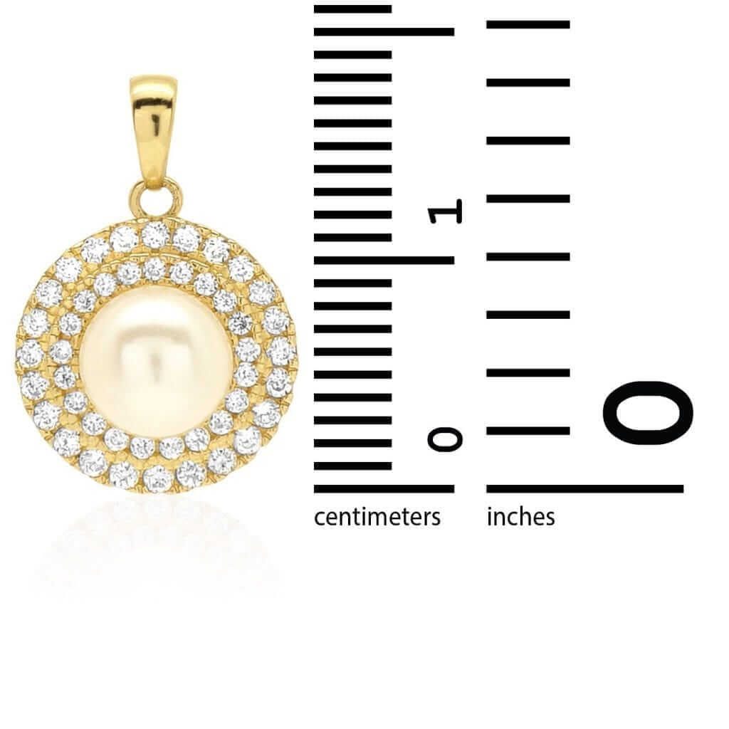 Read full return policy14K Gold 0.60Ct CZ Cultured Pearl Halo Pendant 0.71"