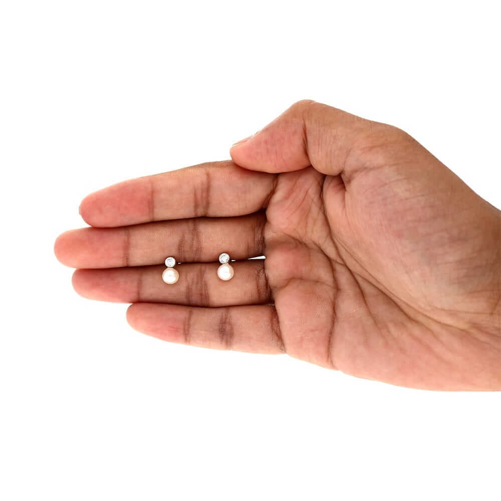 14k Yellow Gold White Gold Cultured Pearl CZ Screw Back EarringsCouldn't load pickup availability
