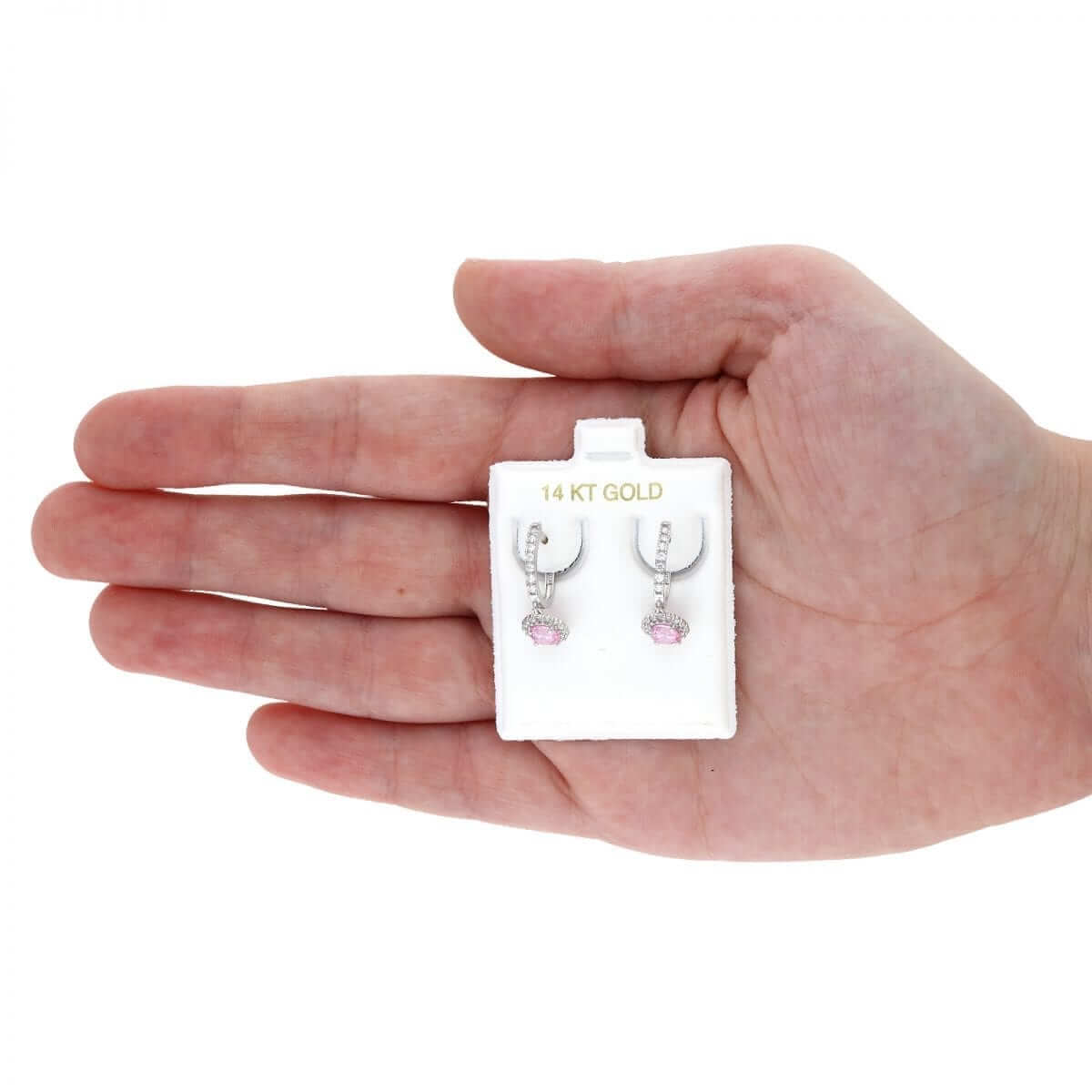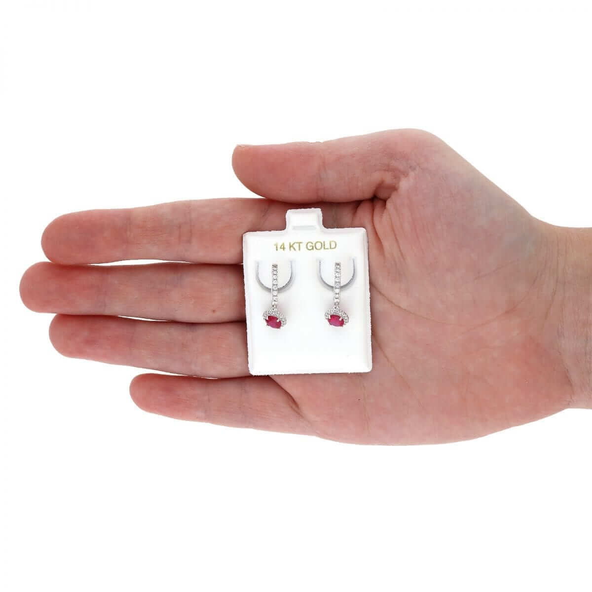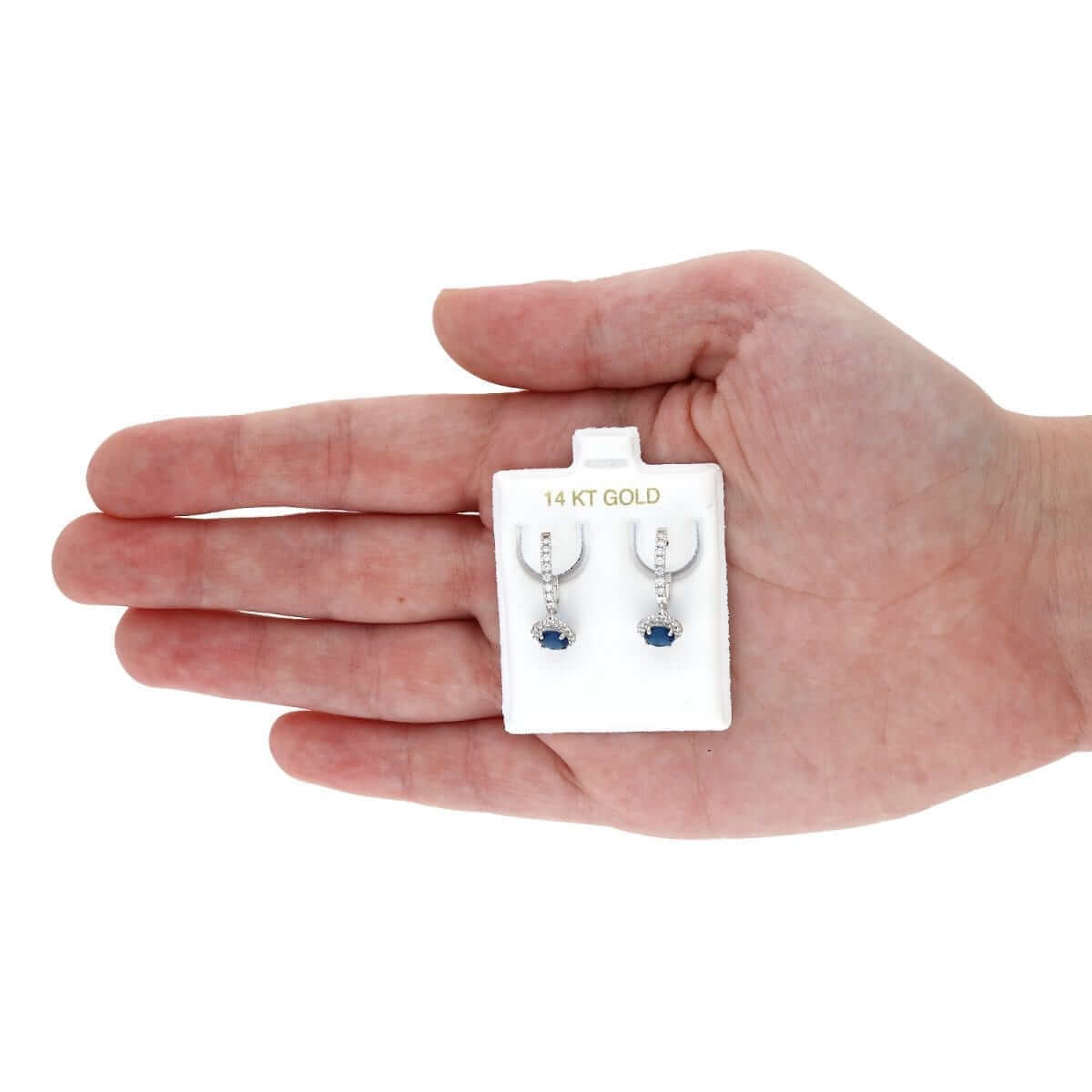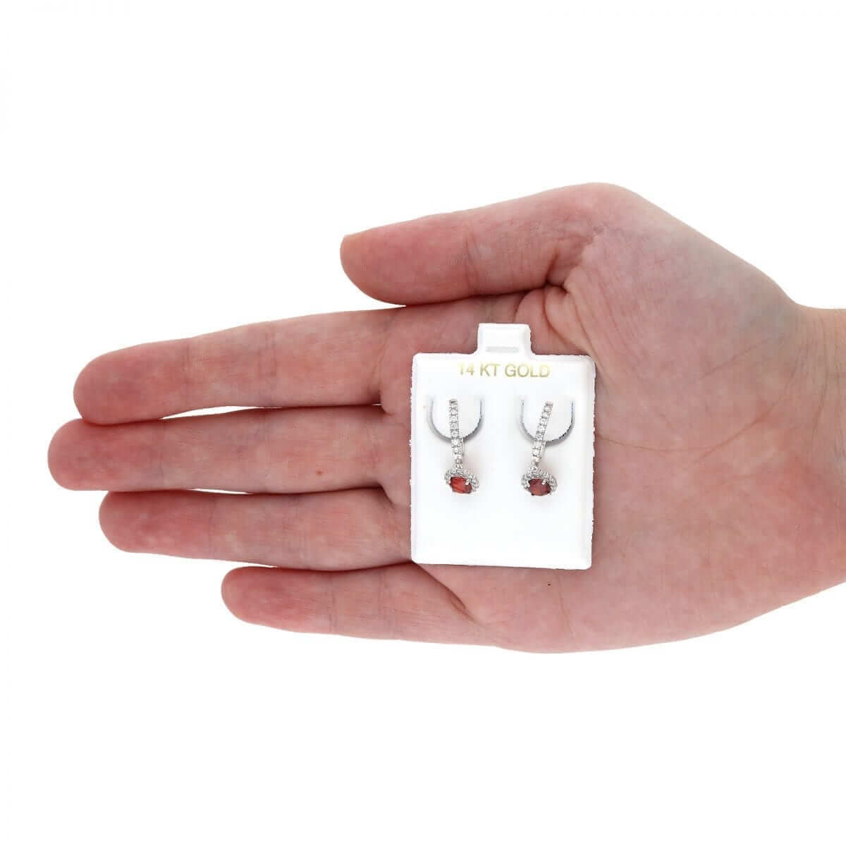 These beautiful dangle earrings are crafted from 14k yellow and white gold, featuring a round cut synthetic birthstone of your choice surrounded by a halo of round cut synthetic white diamonds totaling 1.20 Ct. They have a high polished finish and are secured with hinged snapback closures for comfortable wear.