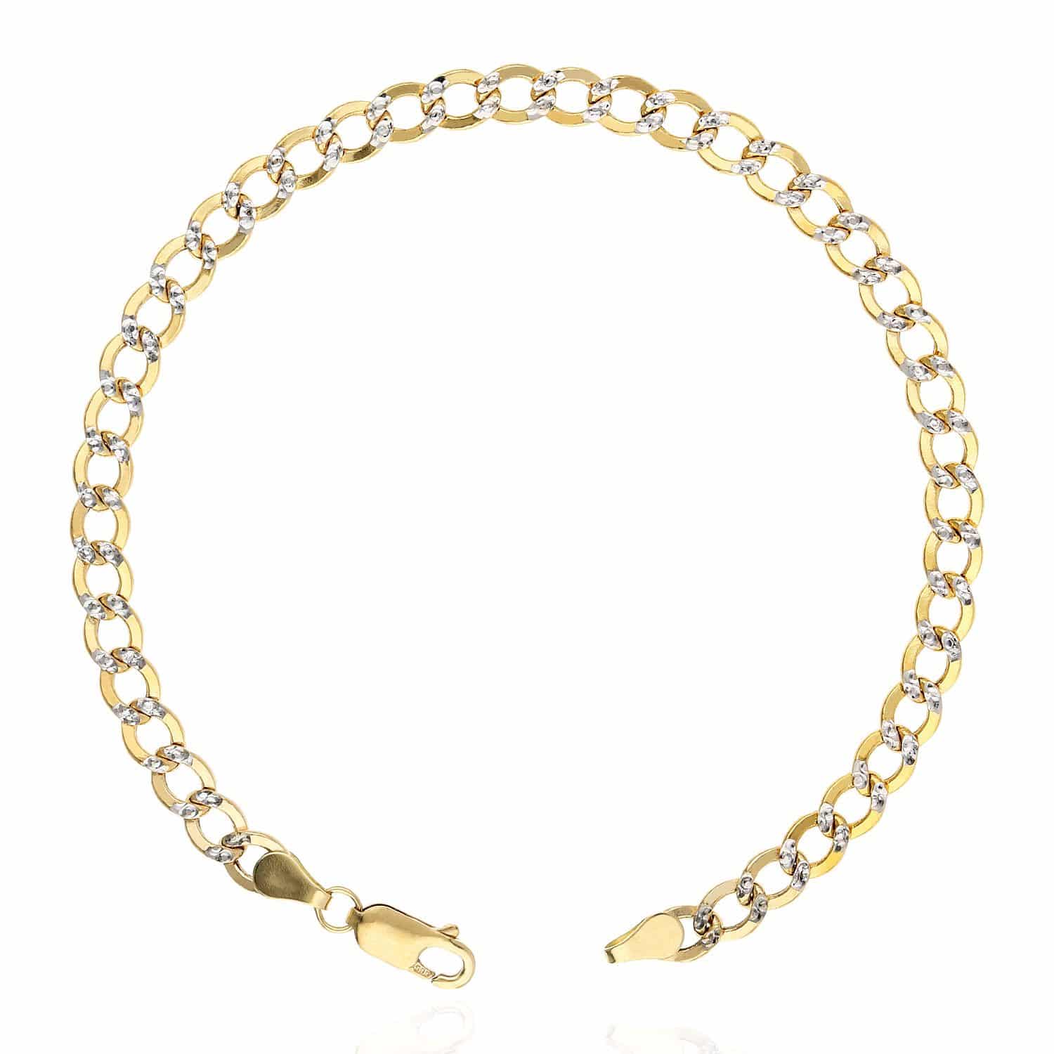 Returns policy →14K Yellow Gold White Pave Diamond-Cut 4.8mm Cuban Bracelet (Hollow) 7" 8"