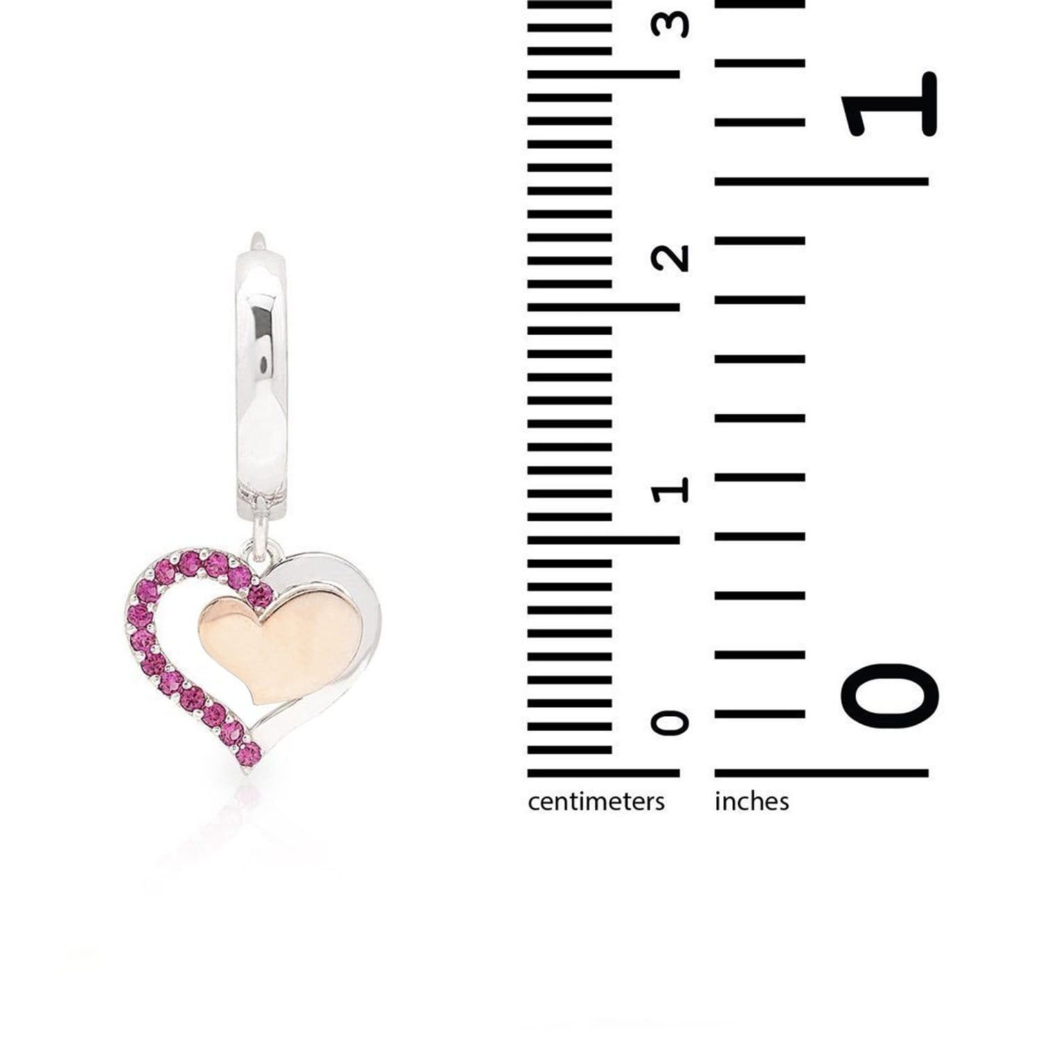 Read full return policy14K Yellow White Gold Double Heart Simulated Ruby Huggie Hoop Dangle Earrings