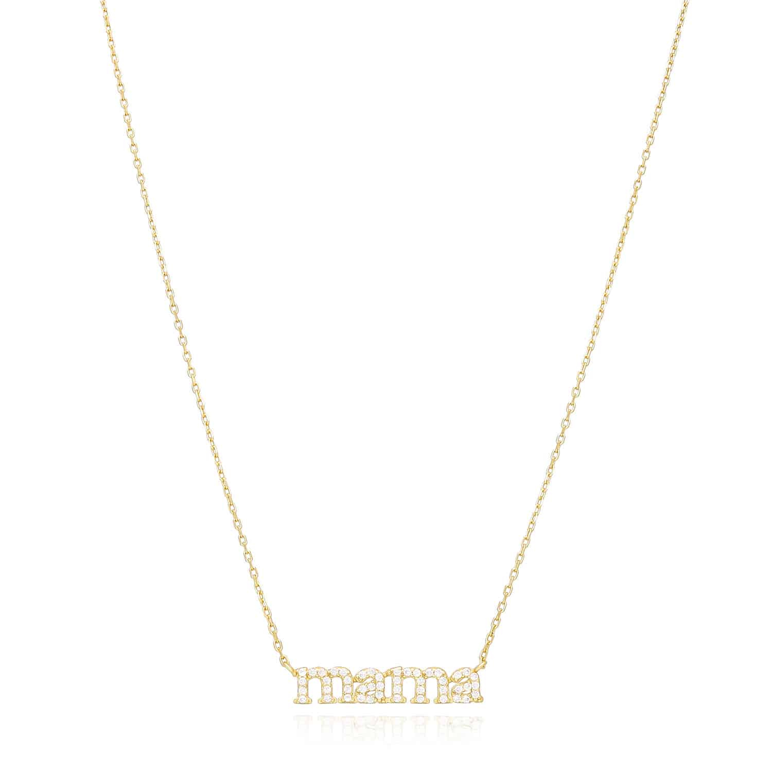 14K Yellow White Gold Over Sterling Silver CZ MAMA Plate Cable Necklace (Solid Links) 16"-18" Adjustable