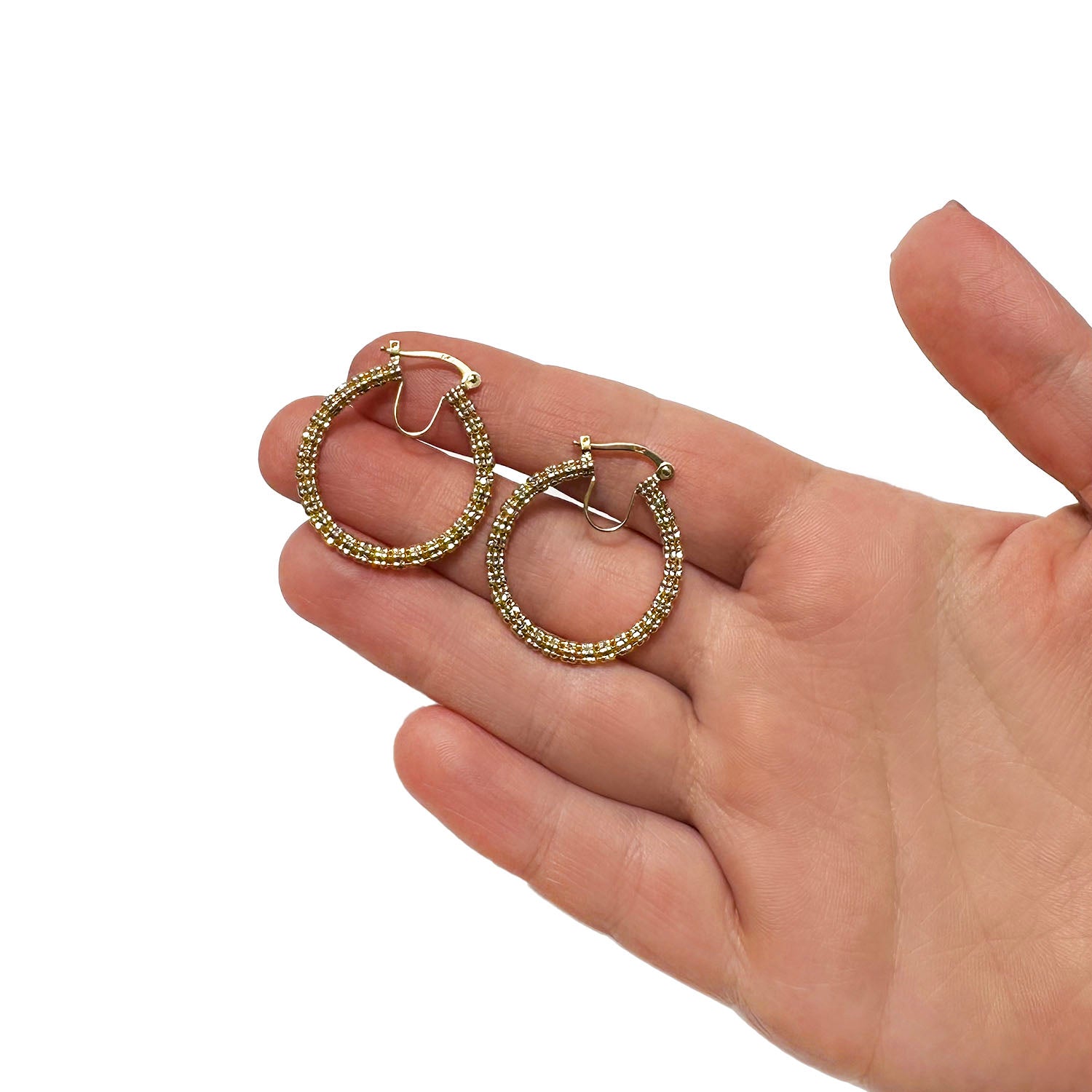 14K Yellow White Rose Gold Diamond-Cut Mesh Hoop Earrings 28mm