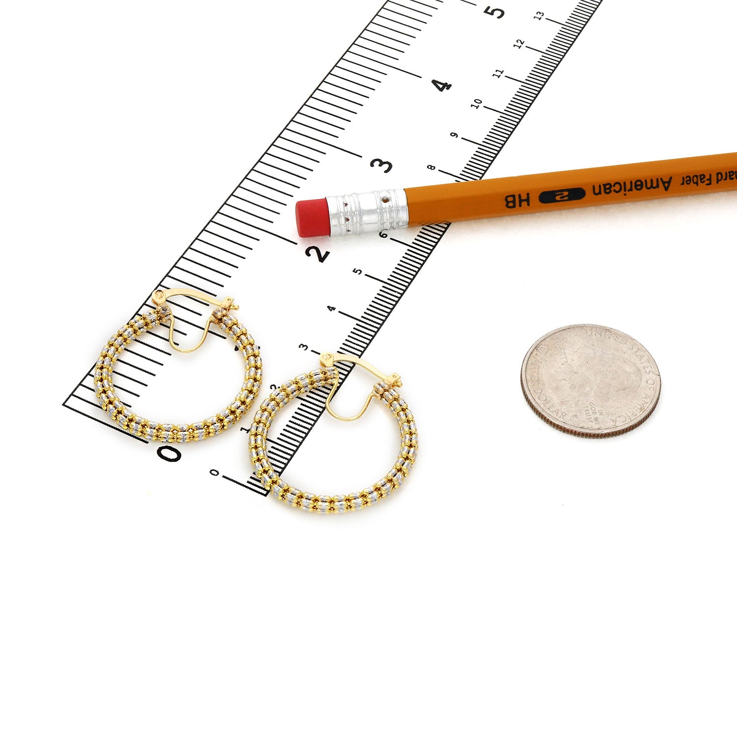 14K Yellow White Rose Gold Diamond-Cut Mesh Hoop Earrings 28mmCouldn't load pickup availability