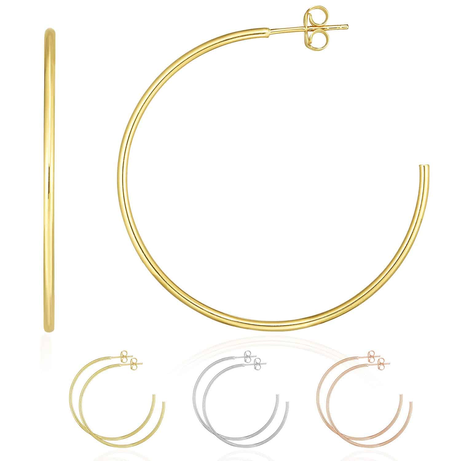 Read full return policy14K Yellow White Rose Gold 1.5mm x 40mm Push Back Half Hoop Earrings