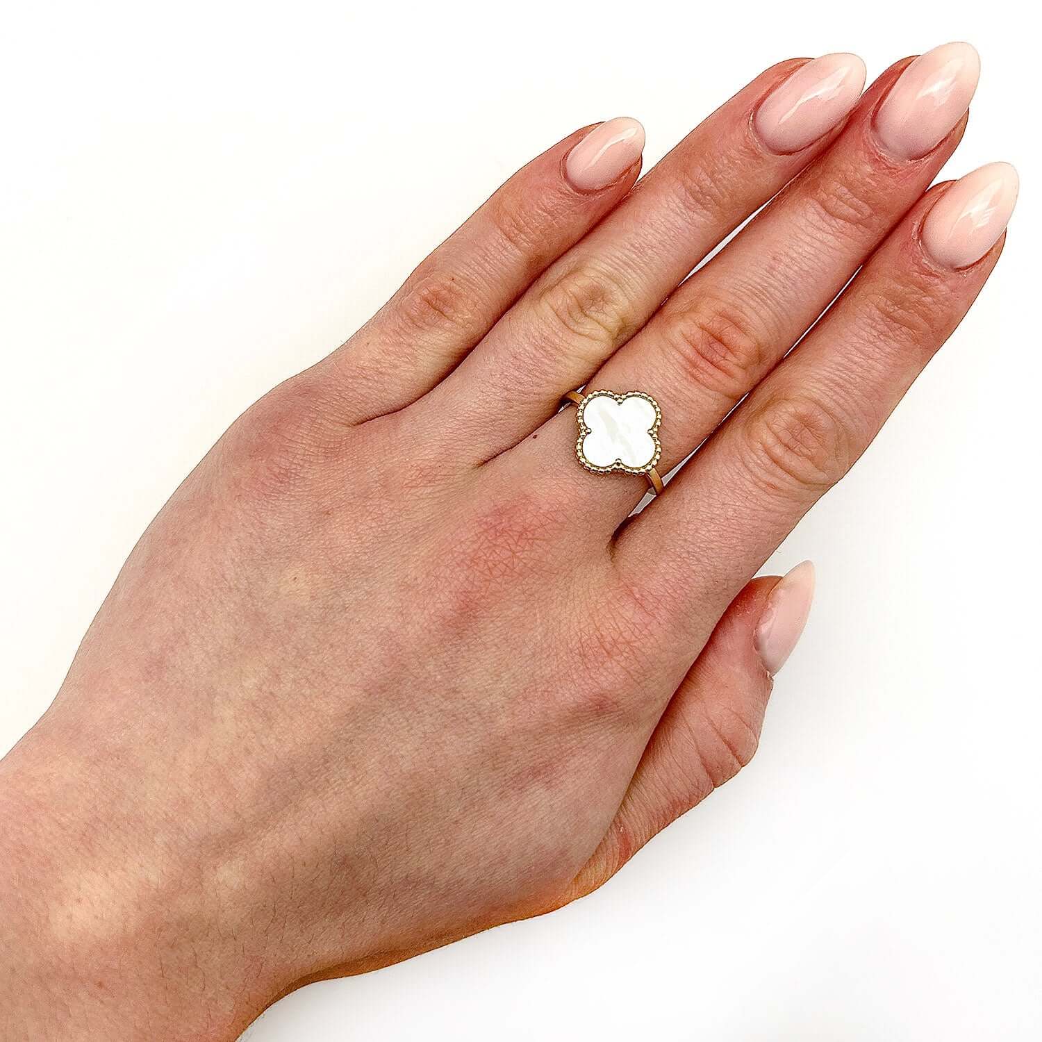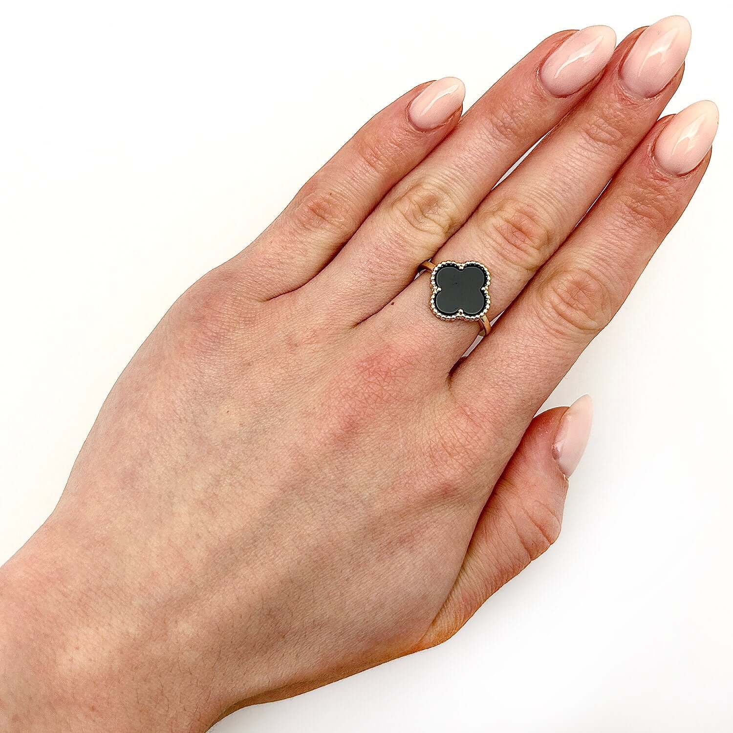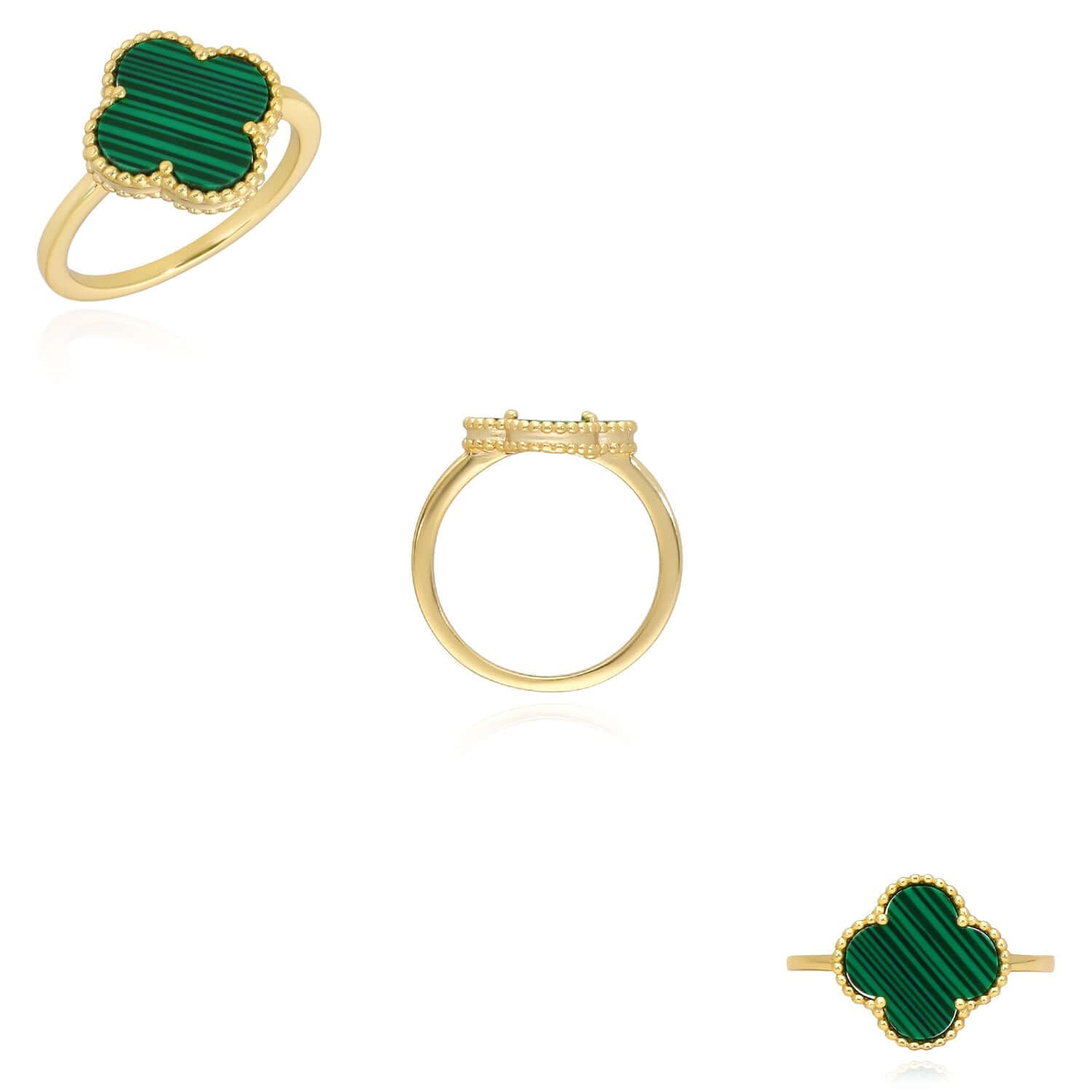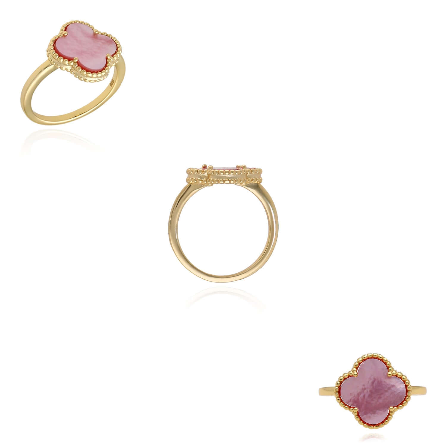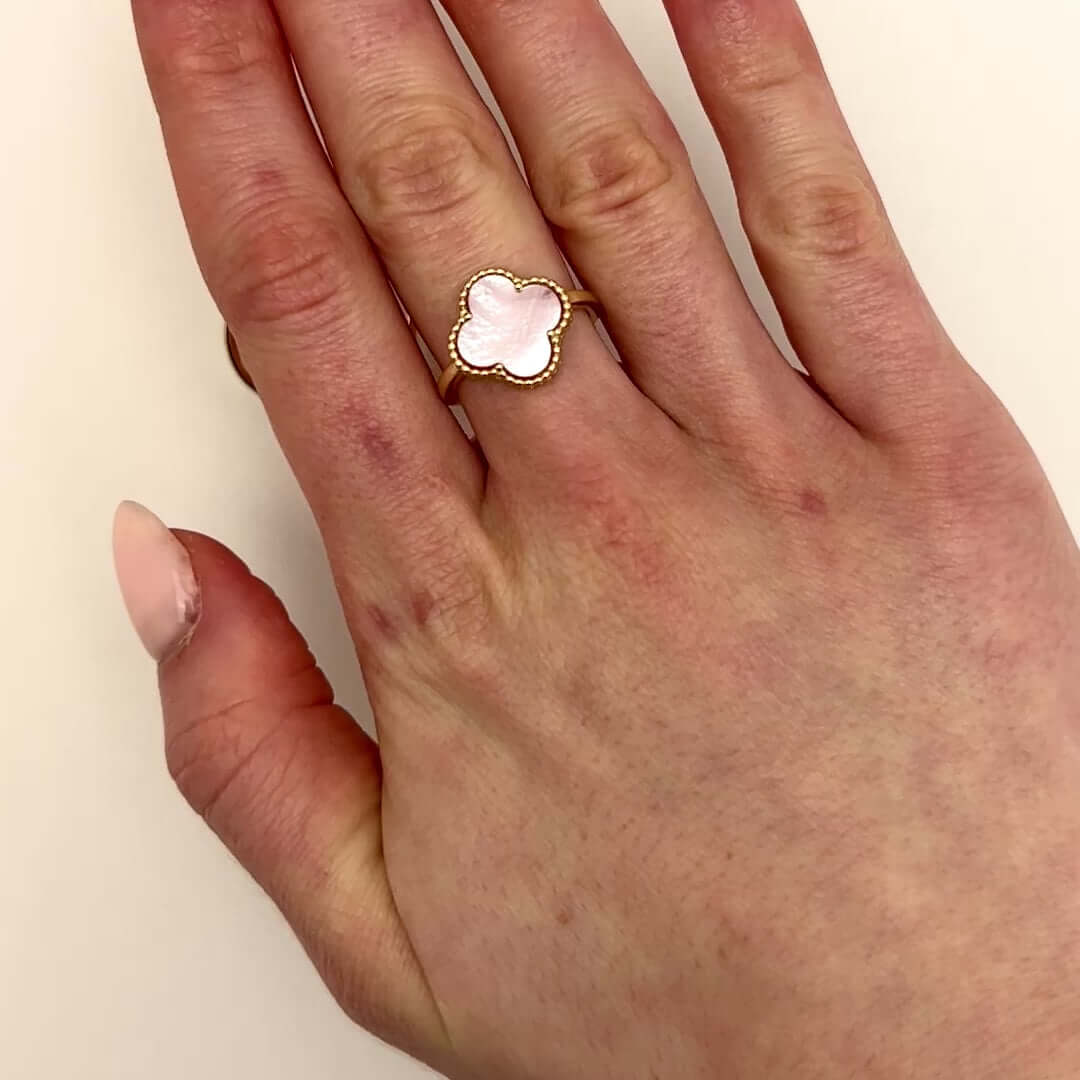 Gold Over Silver Pink, MOP, Black Onyx, White MOP, Malachite, Carnelian Clover RingCouldn't load pickup availability