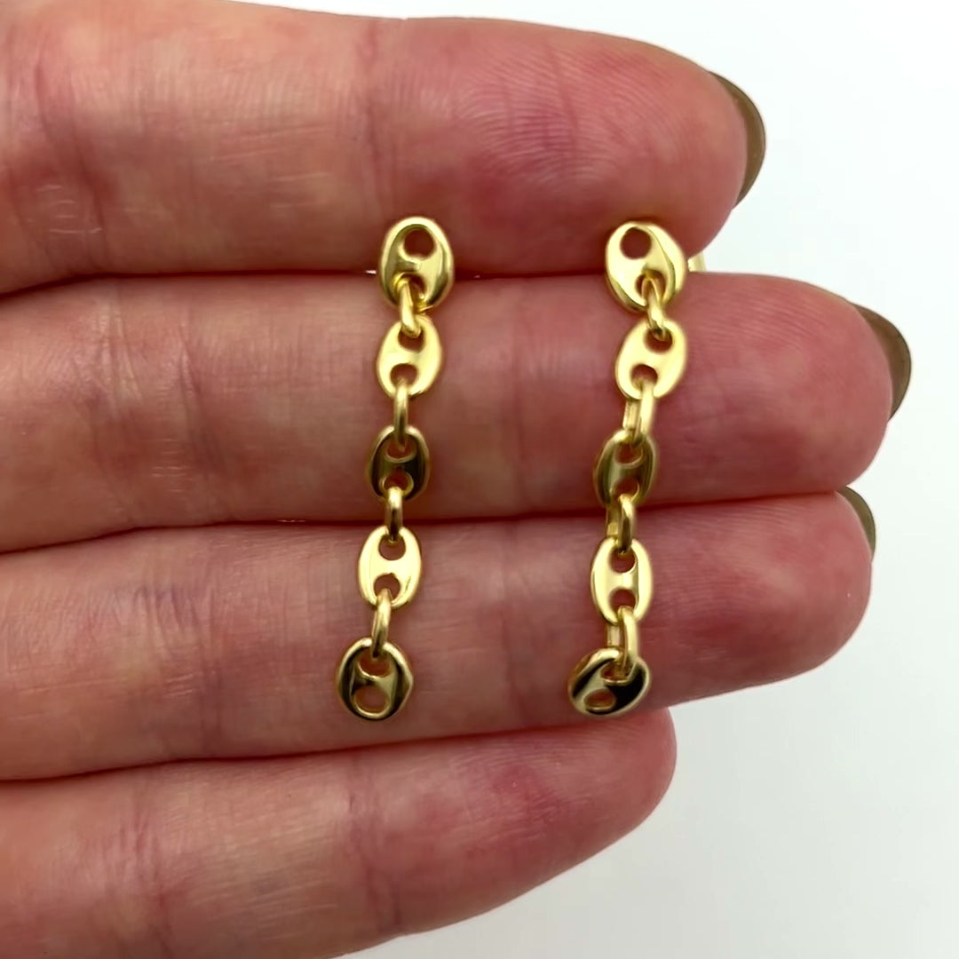 18K Gold Over Sterling Silver Puffed Mariner Drop Chain Earrings 36mmCouldn't load pickup availability