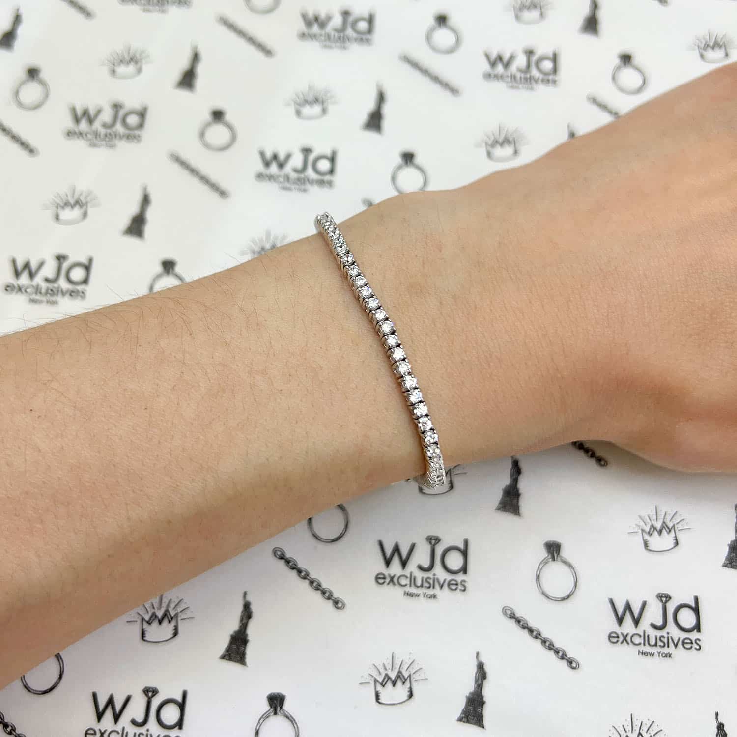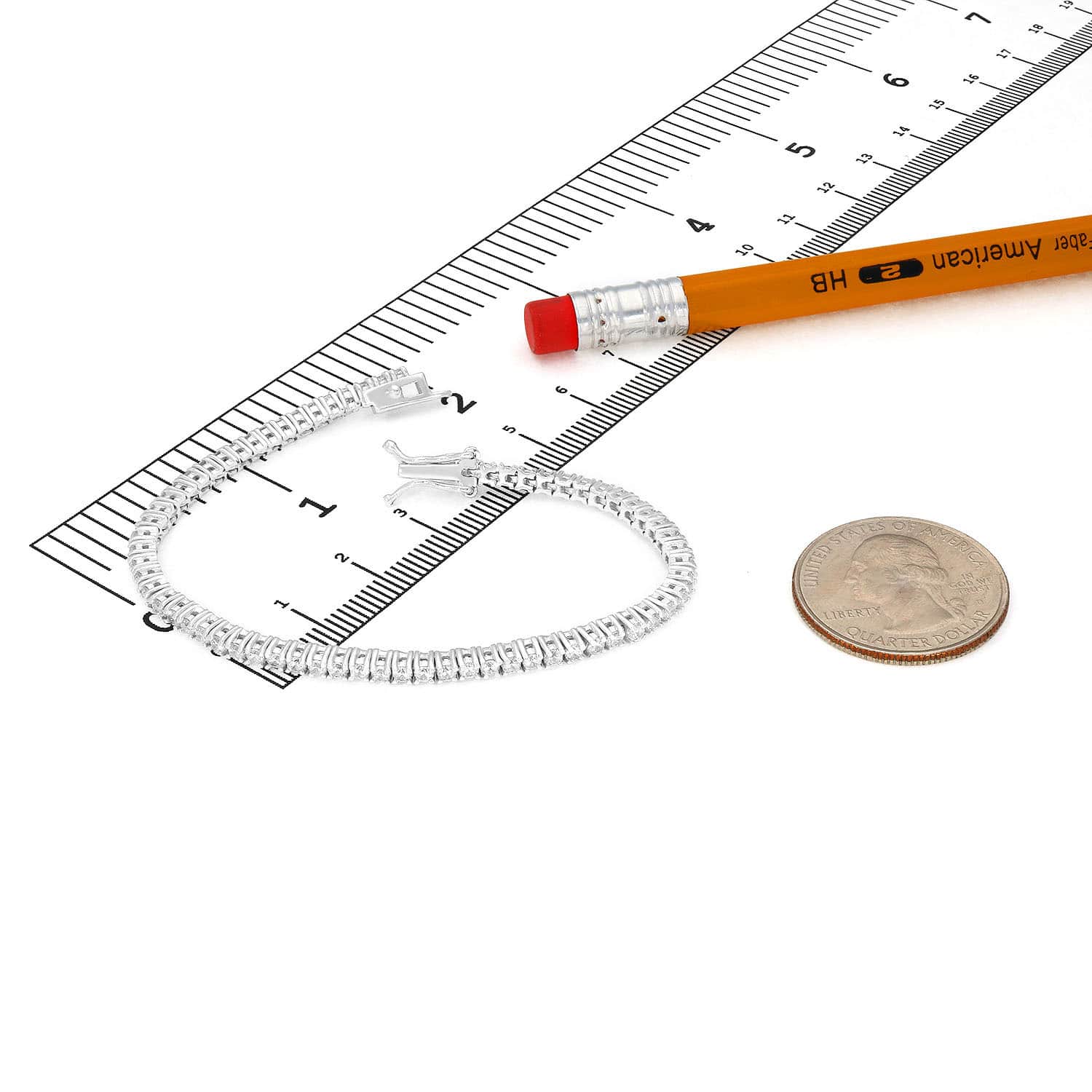 18K White Gold Over Sterling Silver CZ 2mm Tennis Bracelet 5"-6"Couldn't load pickup availability