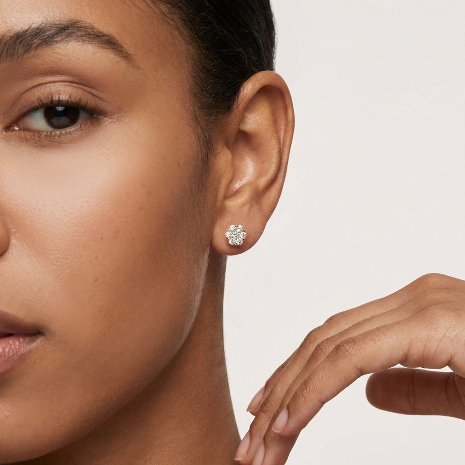 Returns policy →1Ct Natural Diamond Flower Cluster Stud 14K Yellow White Rose Gold Earrings 7mm