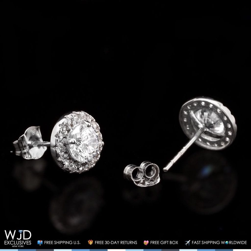 1Ct Round CZ 14K White Gold Halo Push Back Stud EarringsCouldn't load pickup availability