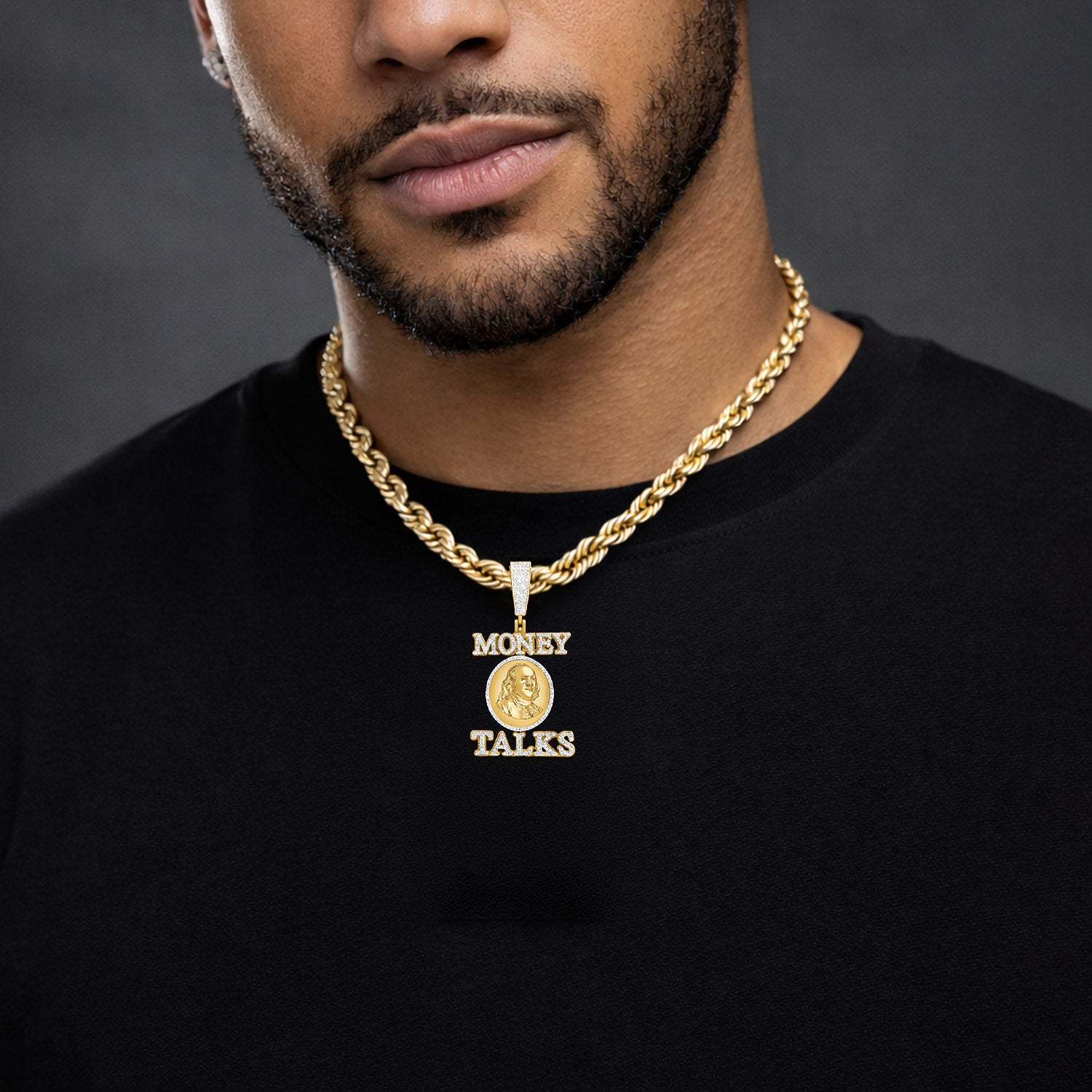 Returns policy →1CTW Natural Diamonds 10K Yellow Gold Dollar "Money Talks" Men's Pendant 2.4"