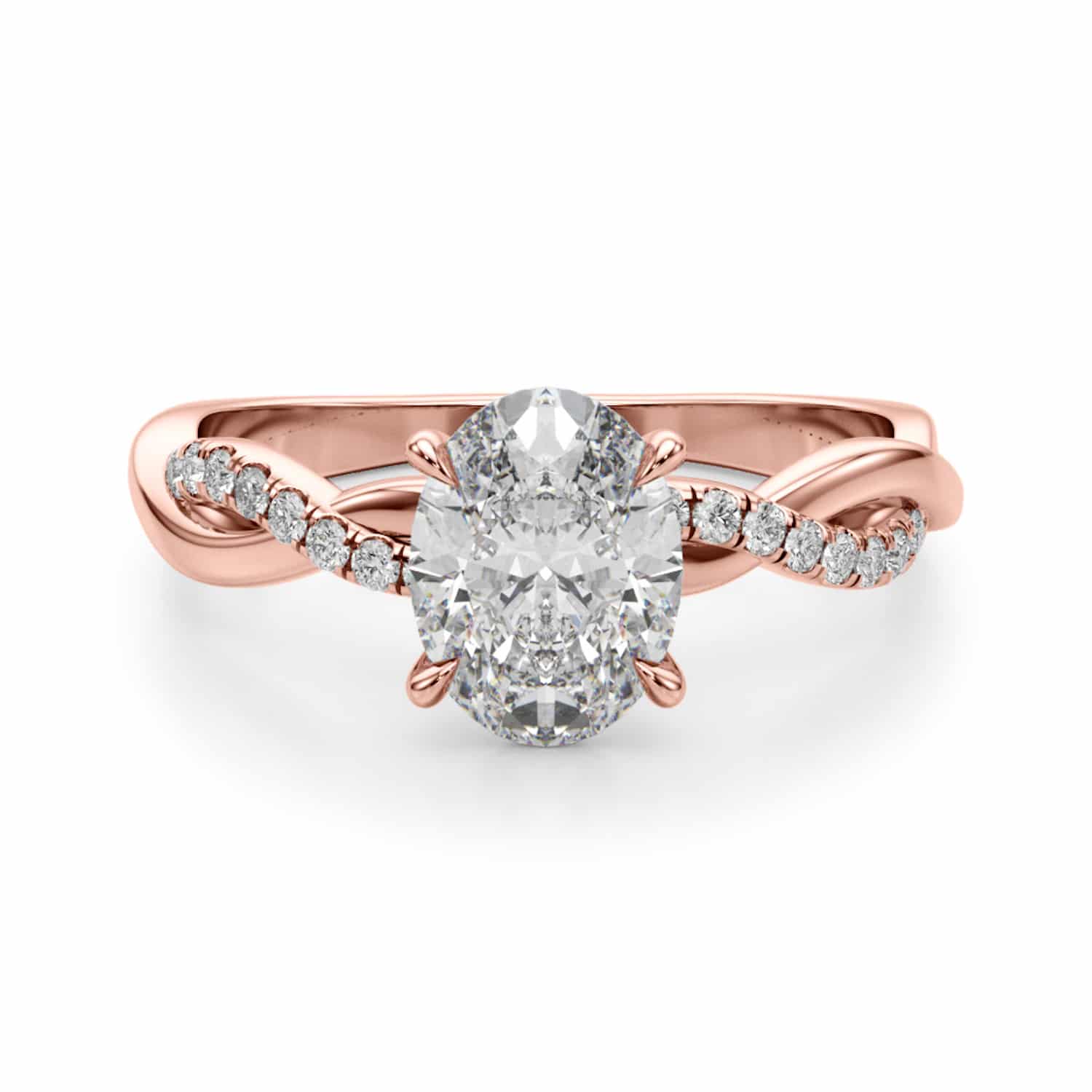 Celebrate your love with this 14K rose gold engagement ring, featuring a 2.00ct oval-shaped lab-grown diamond as the centerpiece. The twisted shank design is accented with additional round diamonds, adding brilliance and modern elegance to the classic silhouette. With a total weight of 2.10CTW, this ethically made ring blends sustainability with timeless beauty. Made-to-order (ships in 4 business days).