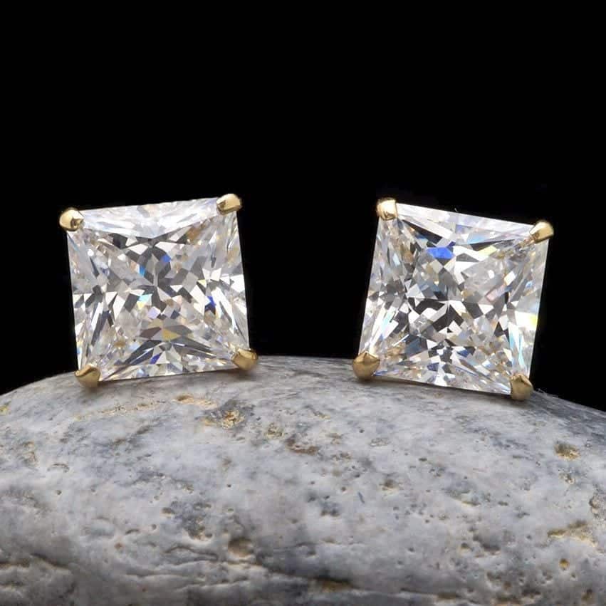 14K Yellow Gold 2.50Ct CZ Princess Screw Back Stud Earrings 7mmCouldn't load pickup availability