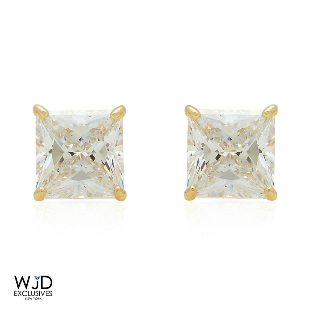 2Ct CZ Princess-Cut 14K Yellow Gold Screw Back Stud EarringsCouldn't load pickup availability