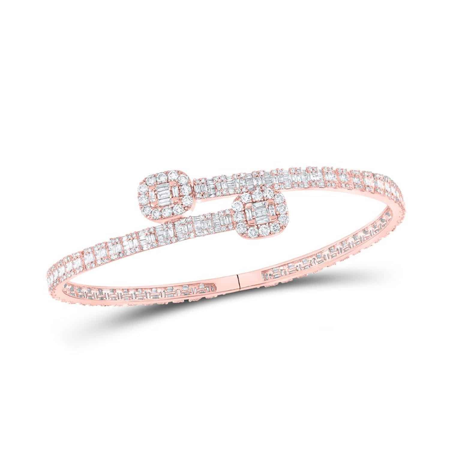 Read full return policy4.80CTW Natural Diamond Baguette 10K Gold Yellow Rose White Cuff Bangle Bracelet