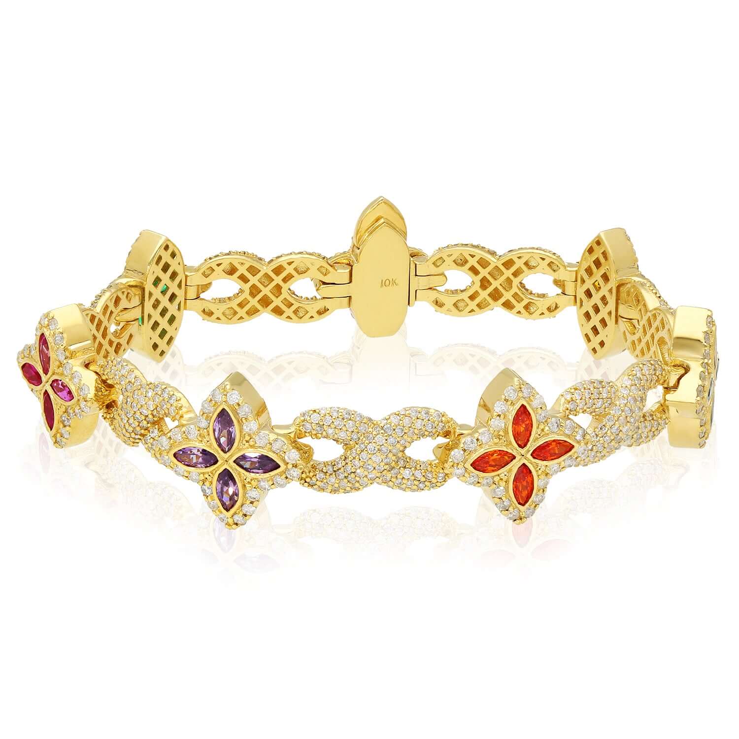 Read full return policy5.91CTW Real Diamond & Multicolor Marquise Gemstones Real 10K Gold Flower Bracelet 8"