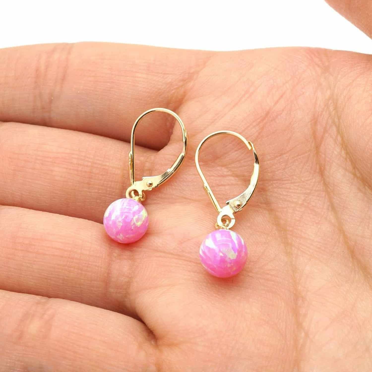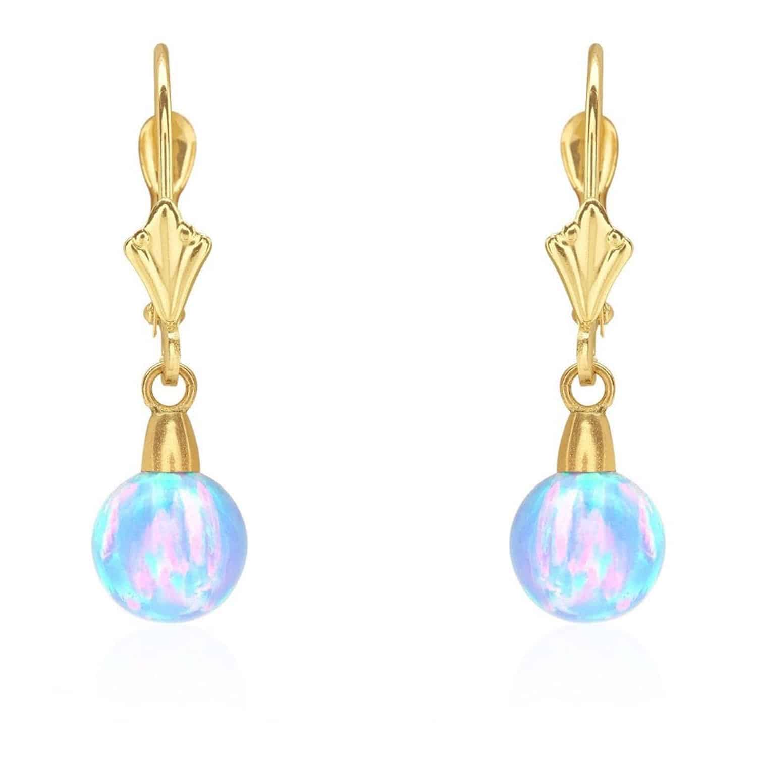 14K Gold 7mm Ball Fire Opal Leverback Dangle EarringsCouldn't load pickup availability