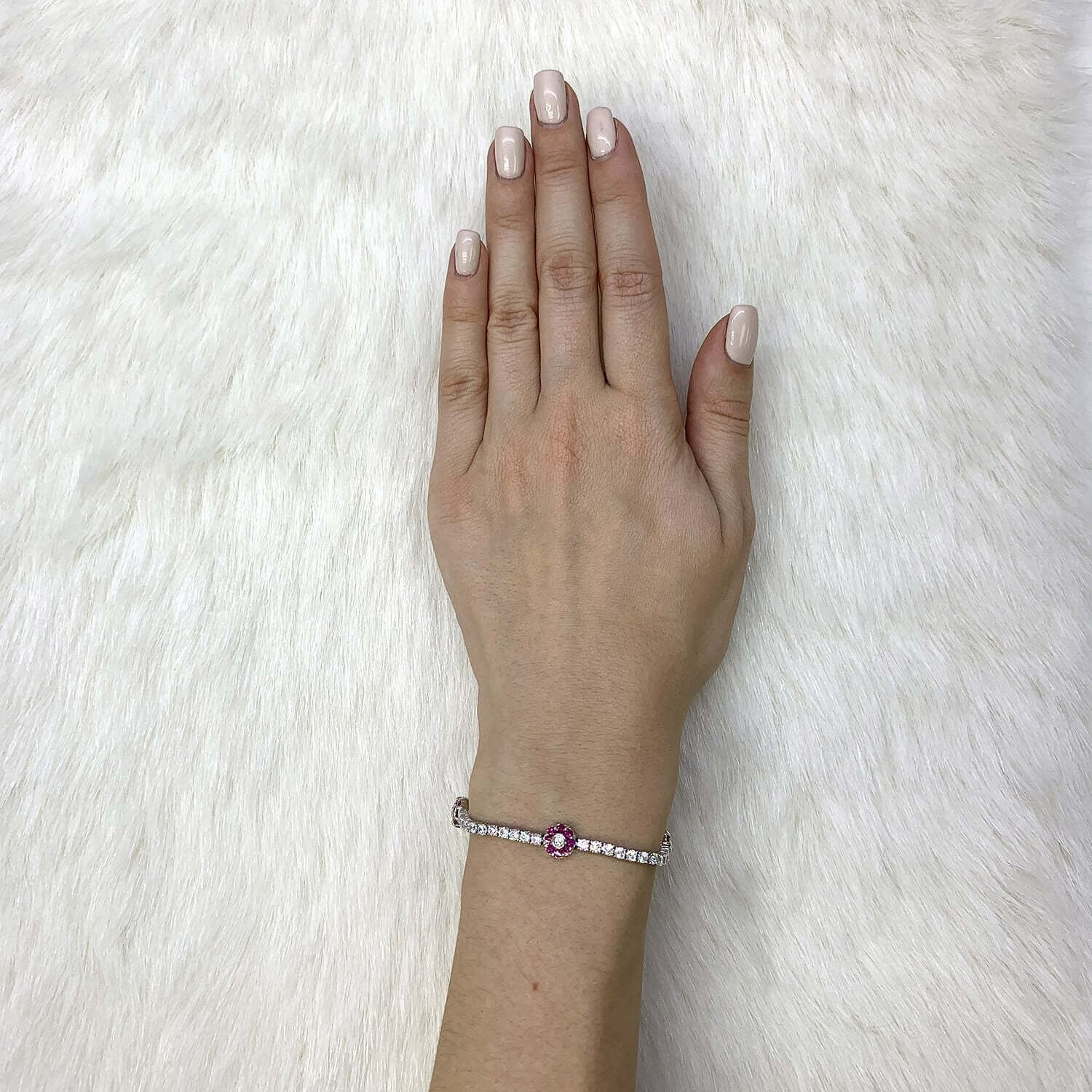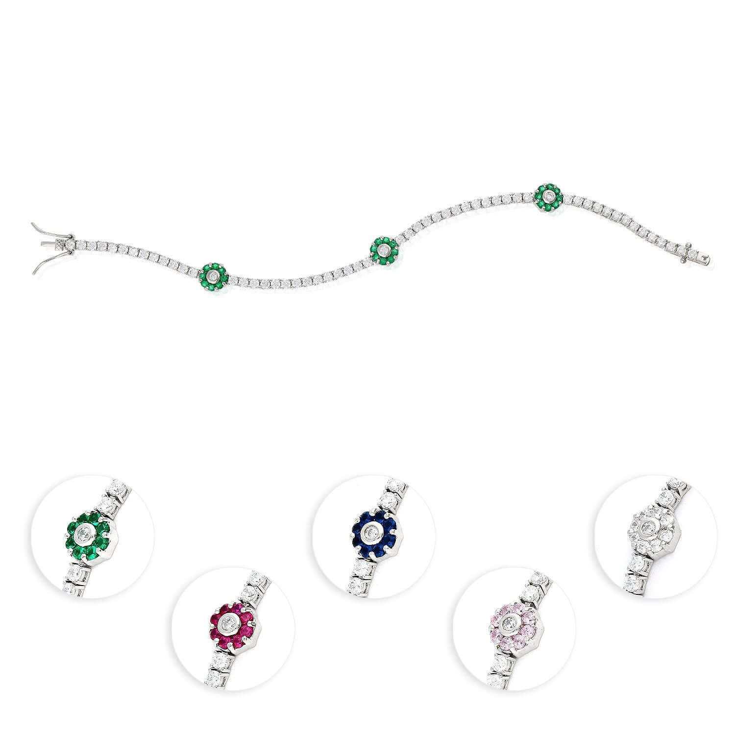 Read full return policySterling Silver Emerald Ruby Sapphire Tourmaline Zircon Flower Tennis Bracelet 7"