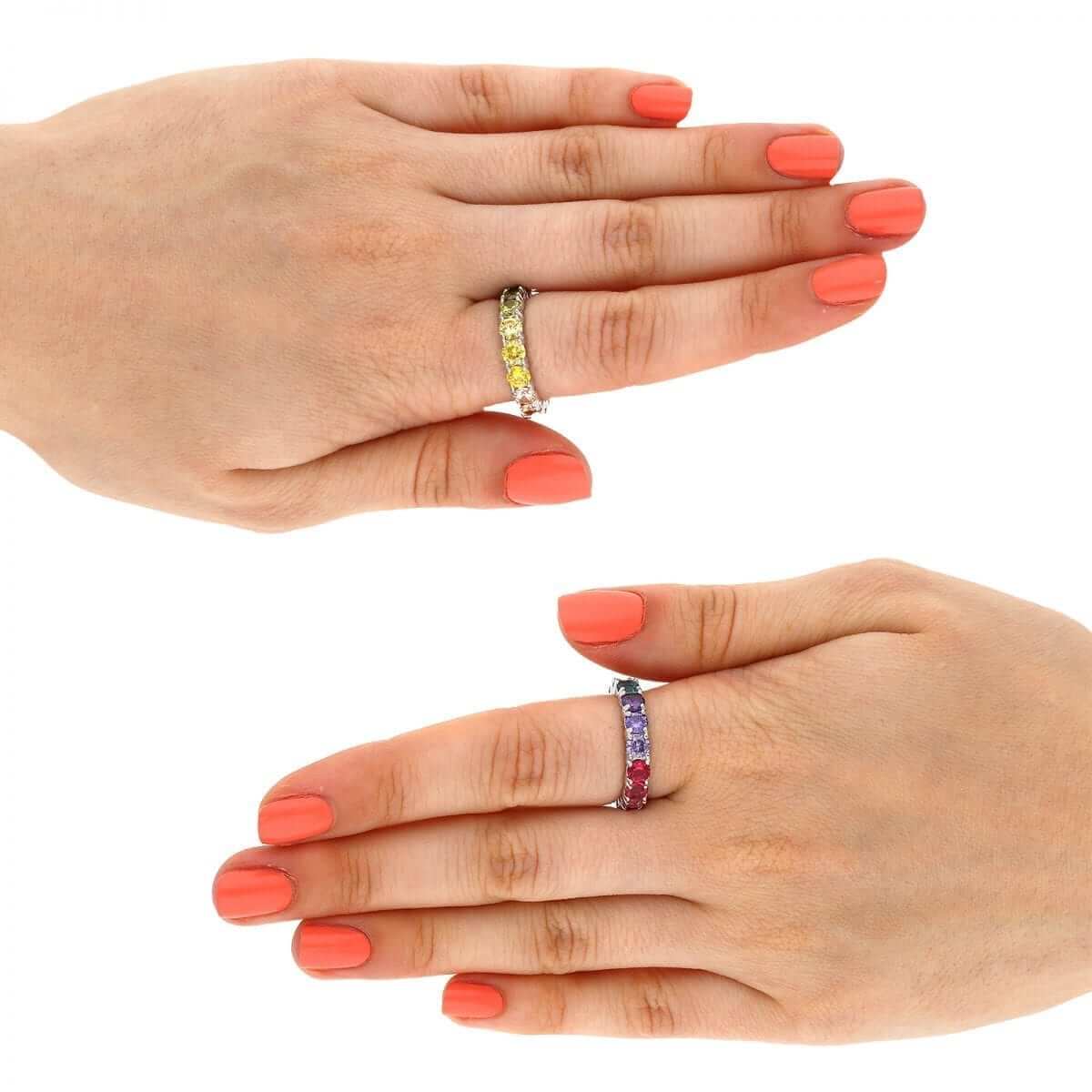 Read full return policy18K Yellow Gold Over 925 Sterling Silver Multicolor CZ Eternity Ring Band