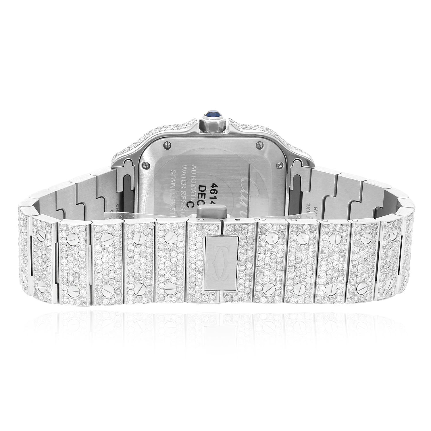Important Note: The diamonds on the bezel, dial, and bracelet are aftermarket additions. They were not set by Cartier. The watch itself is an authentic Cartier timepiece (model WSSA0018).