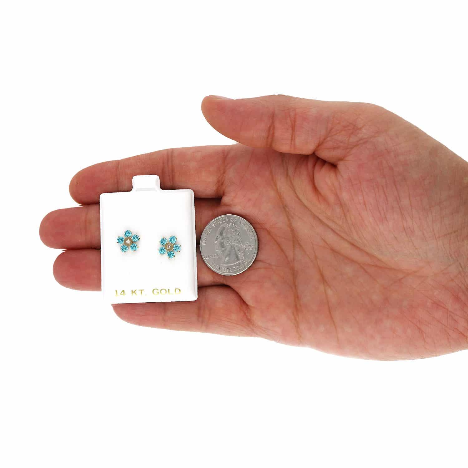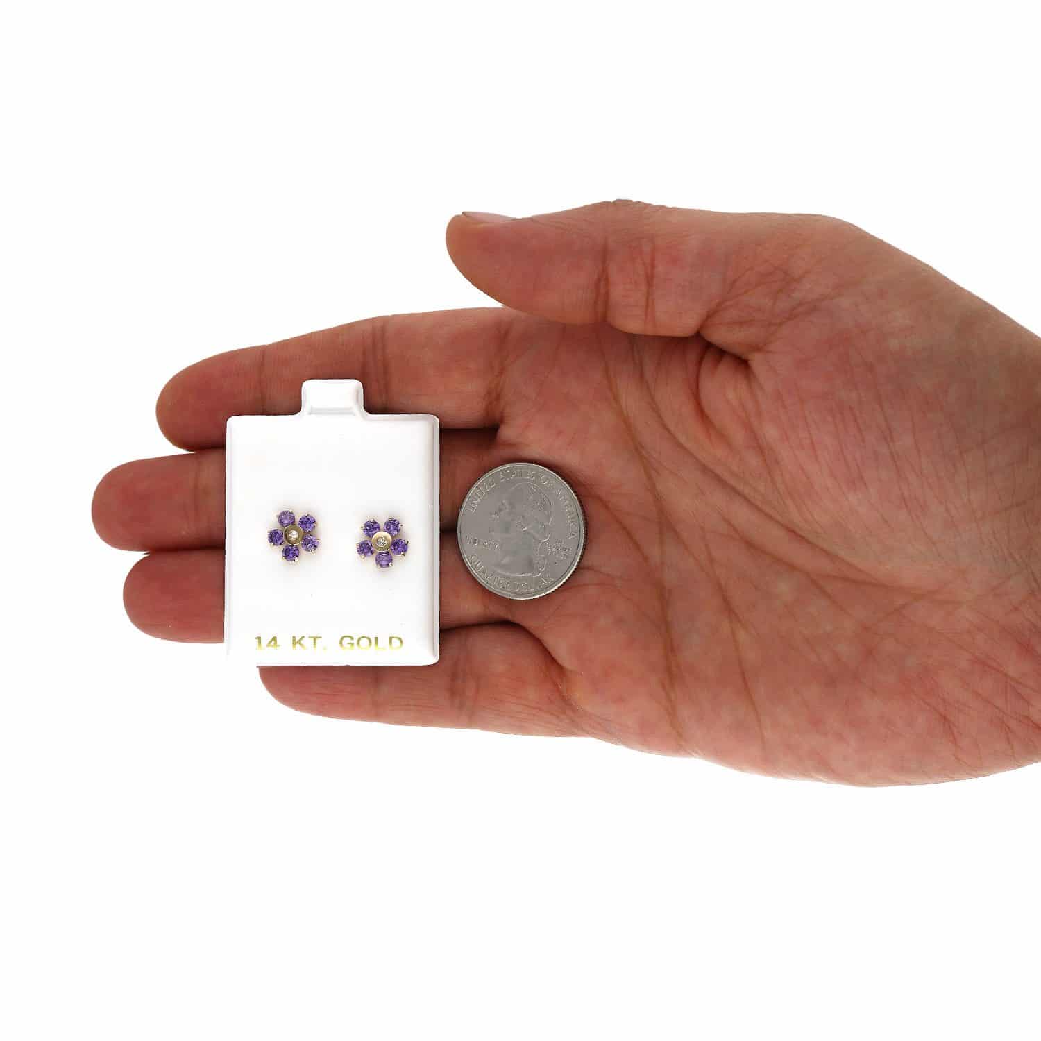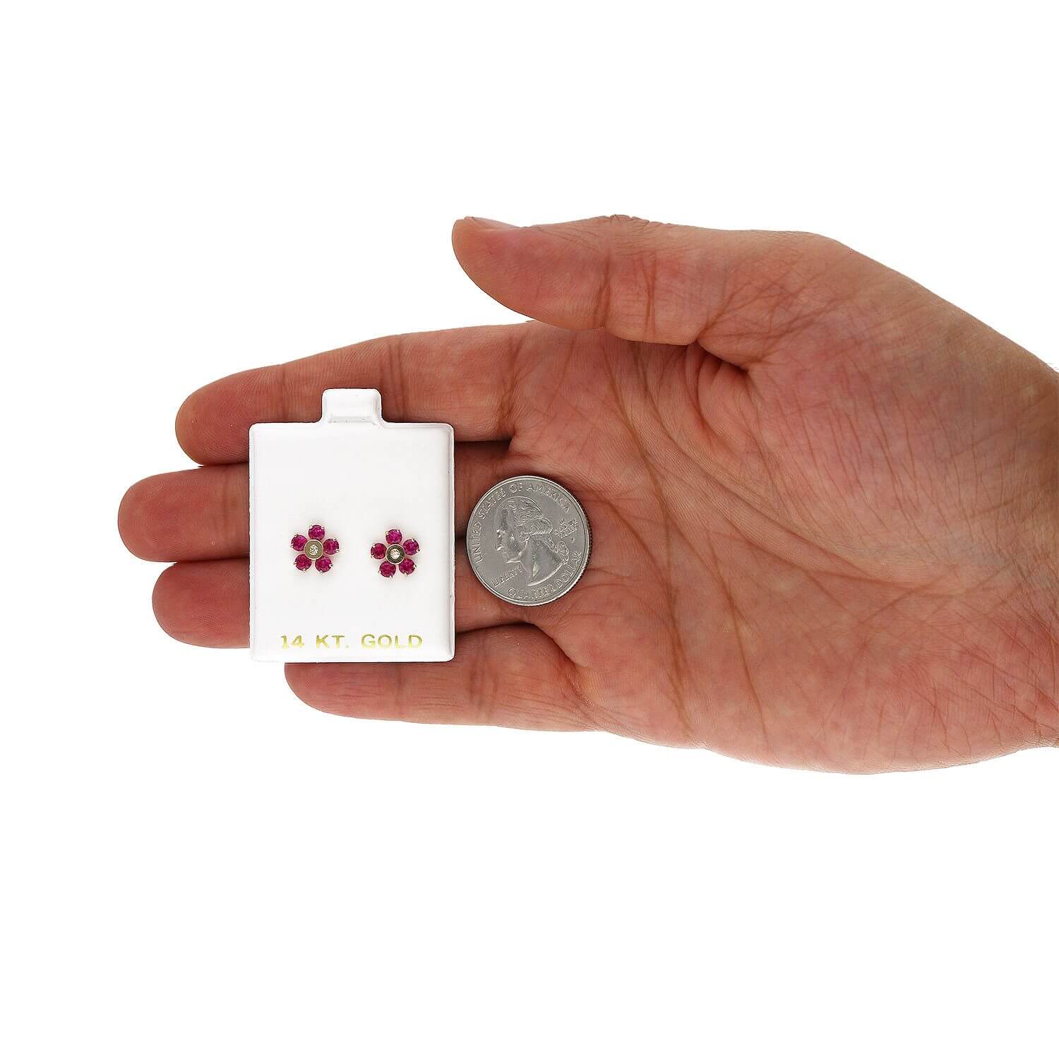 14K Yellow Gold Color Gemstone Flower Screw Back Stud EarringsCouldn't load pickup availability
