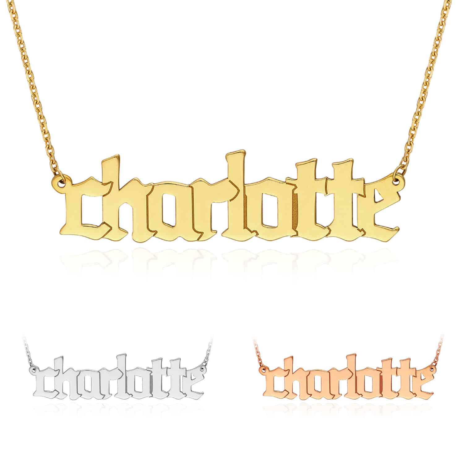Read full return policyCustomizable 14K Yellow White Rose Gold Gothic Nameplate Necklace (Solid Links) 14"-18" Adjustable