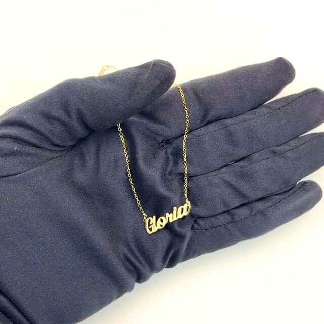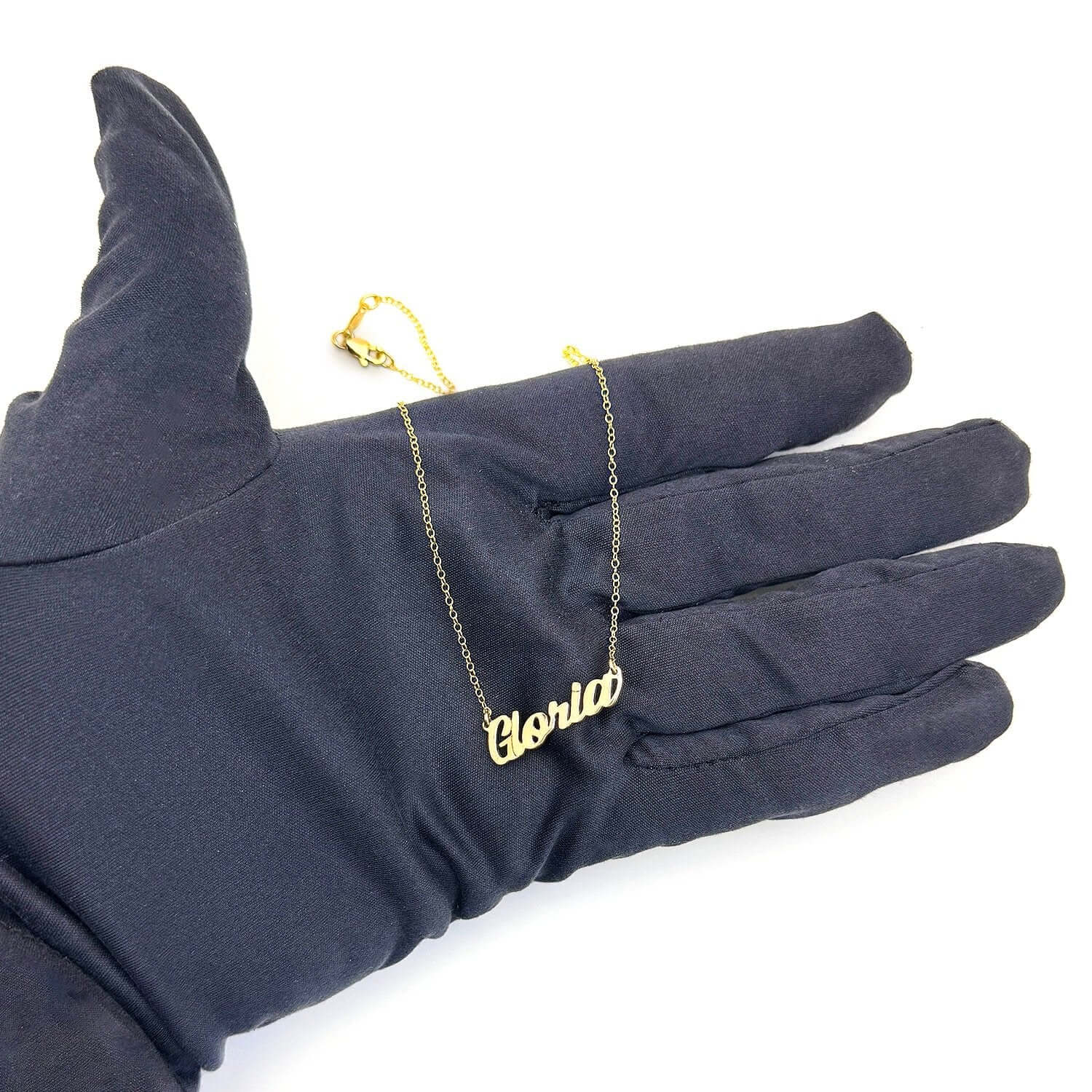 Read full return policyCustomizable 14K Yellow White Rose Gold Script Nameplate Necklace (Solid Links) 14"-18" Adjustable