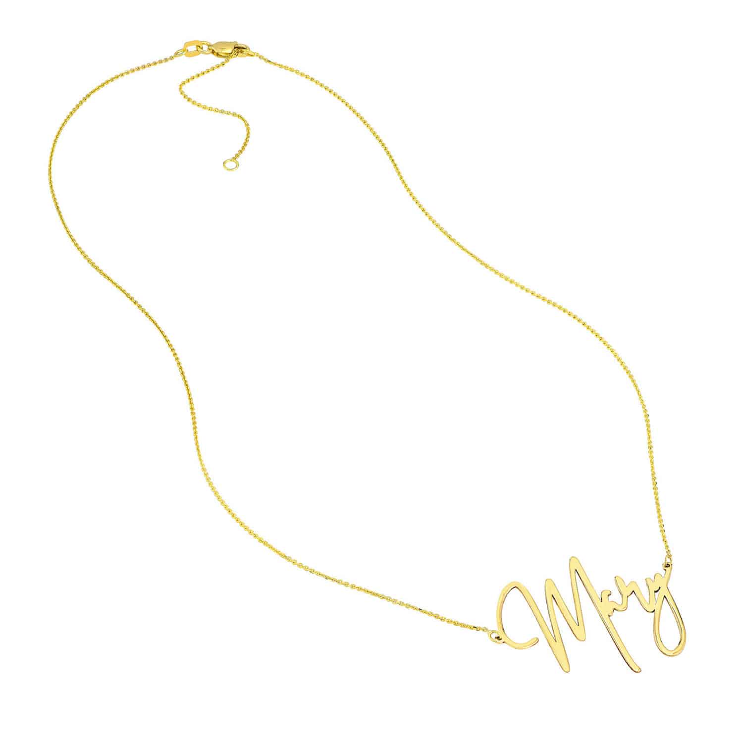 Customizable 14K Yellow Gold Signature Nameplate Necklace (Solid Links) 14"-AdjustableCouldn't load pickup availability