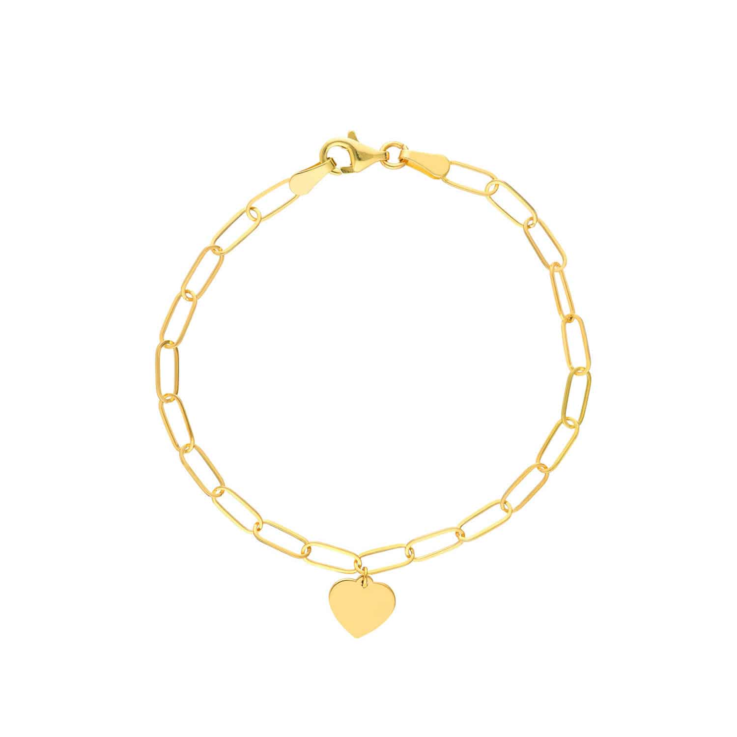 Read full return policyEngravable 14K Yellow Gold Paperclip Personalized Heart Charm Bracelet (Hollow) 7.5"