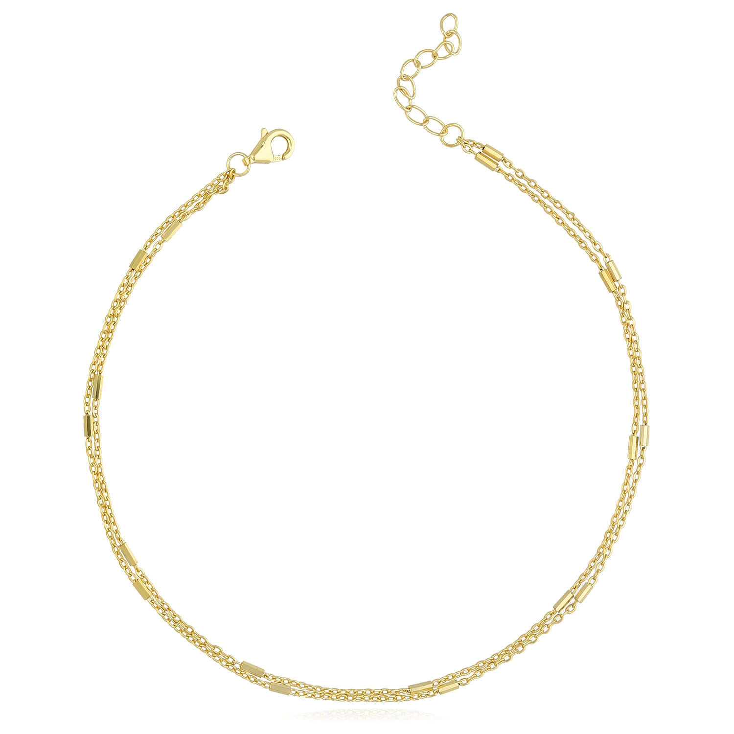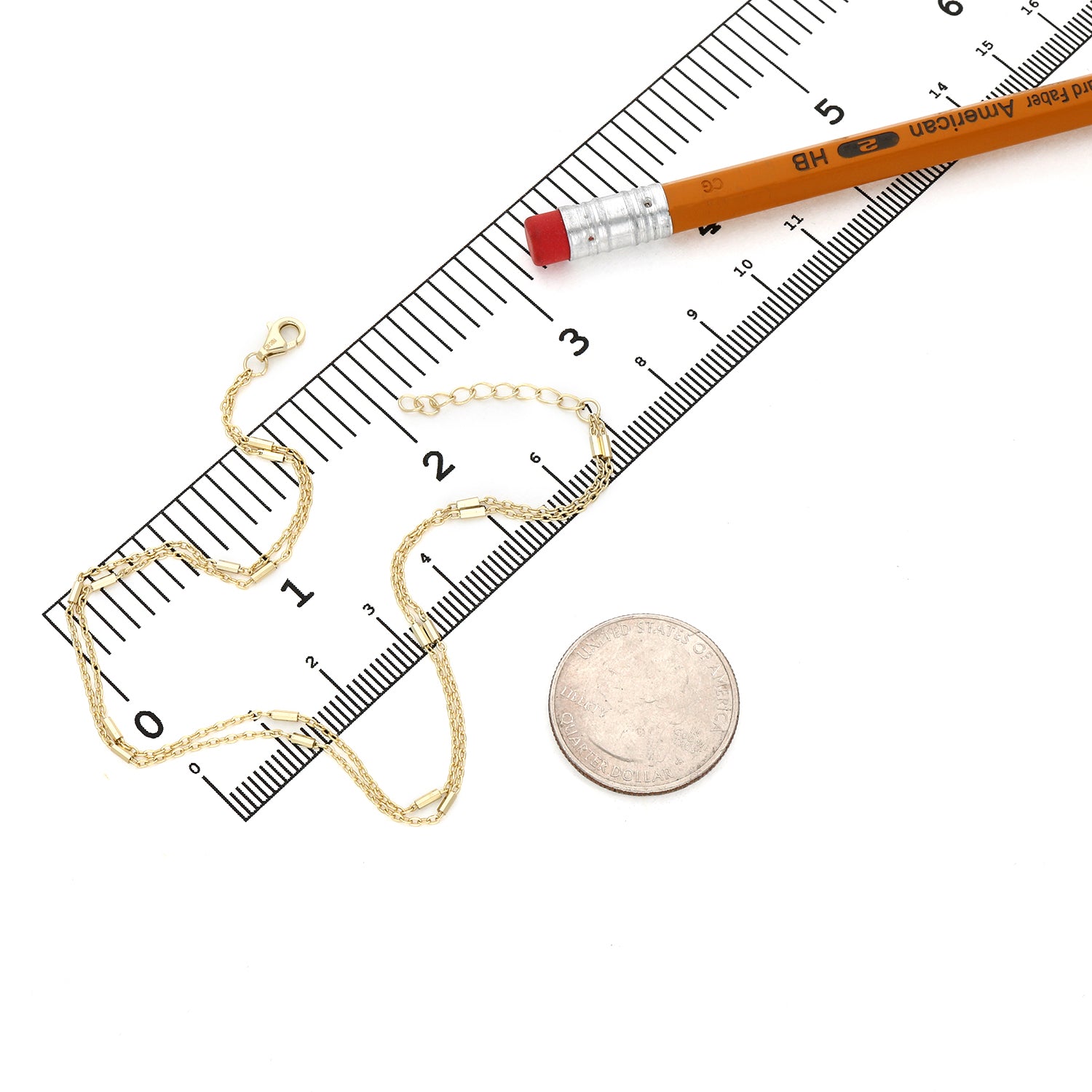 18K Yellow Gold Over Sterling Silver 1.5mm Double Cable Link Bar Adjustable Ankle Bracelet (Solid Links) 9"-10"Couldn't load pickup availability