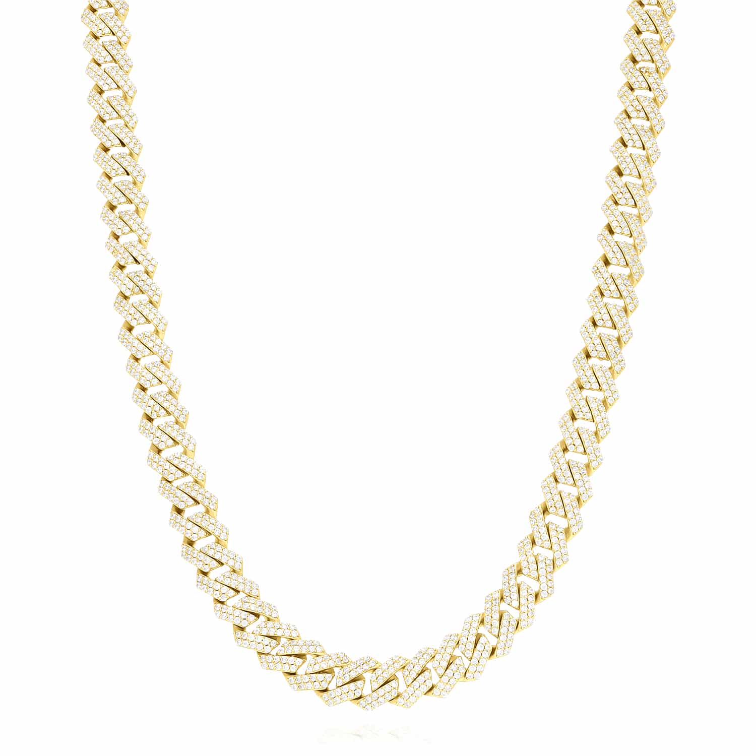 Read full return policyYellow Gold Over Sterling Silver CZ Pave 8.5mm Edge Miami Cuban Chain (Solid Links) 16"-24"