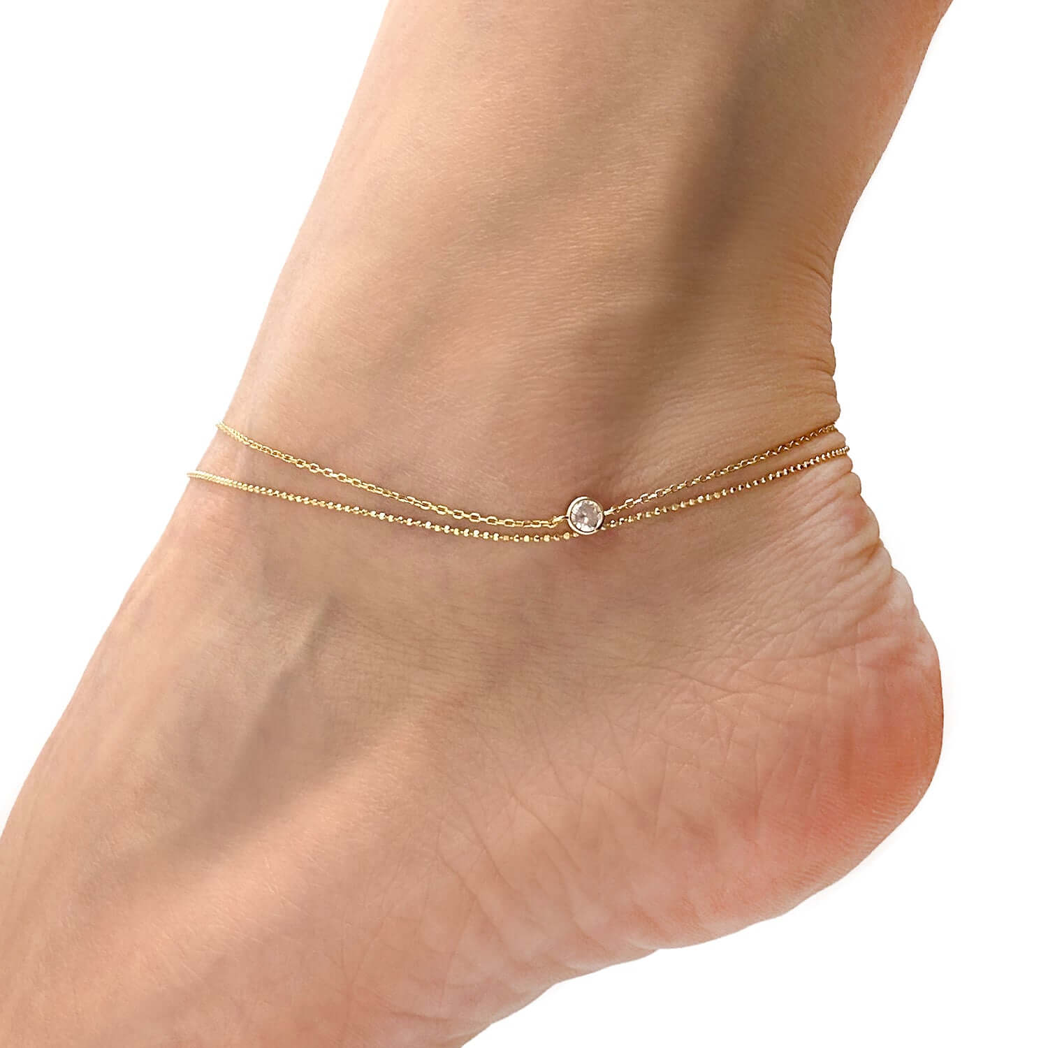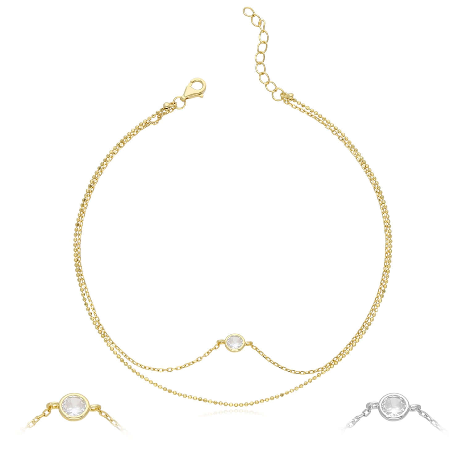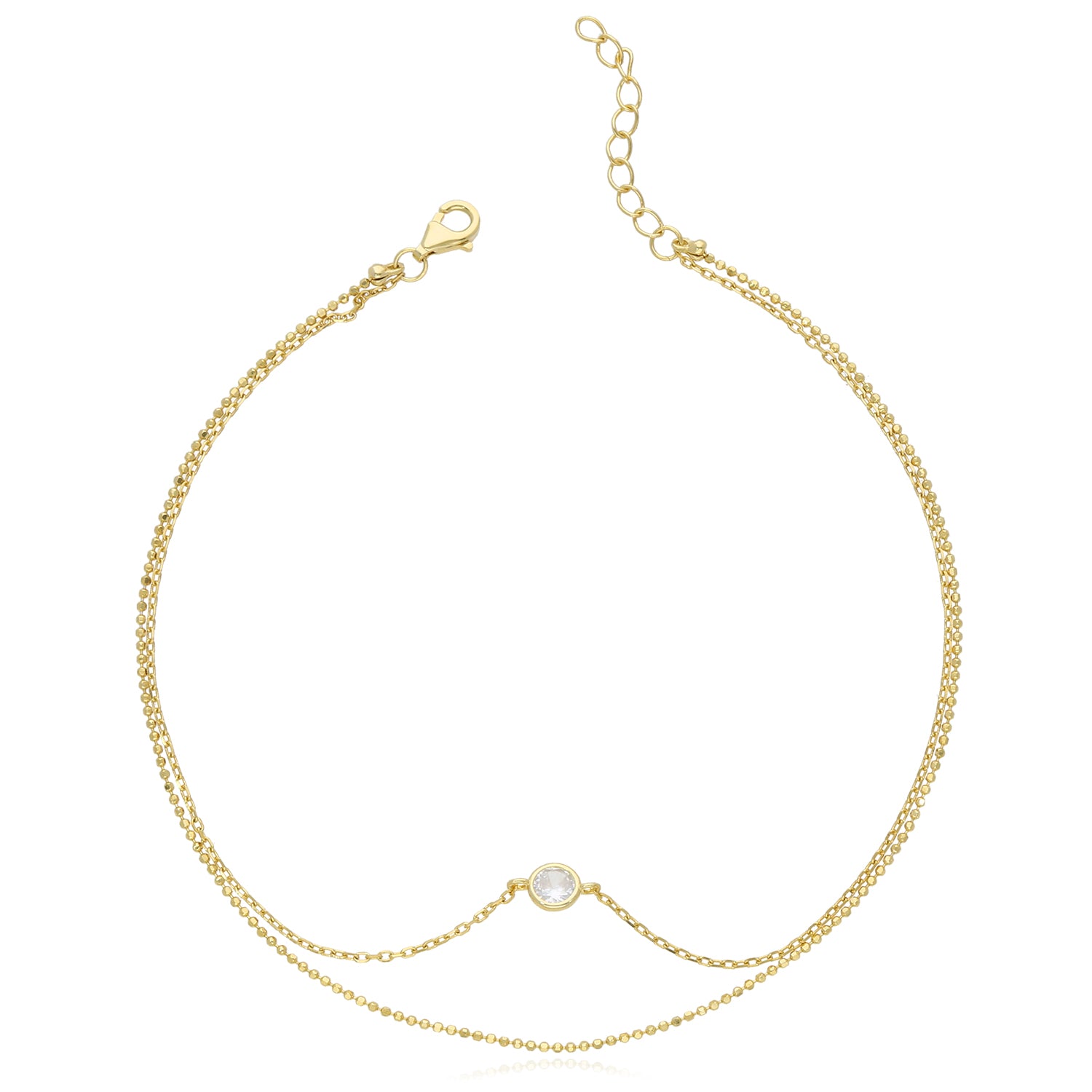 Read full return policy18K Yellow Gold Over Sterling Silver CZ Charm 1mm Double Link Adjustable Ankle Bracelet (Solid Links) 9"-10"