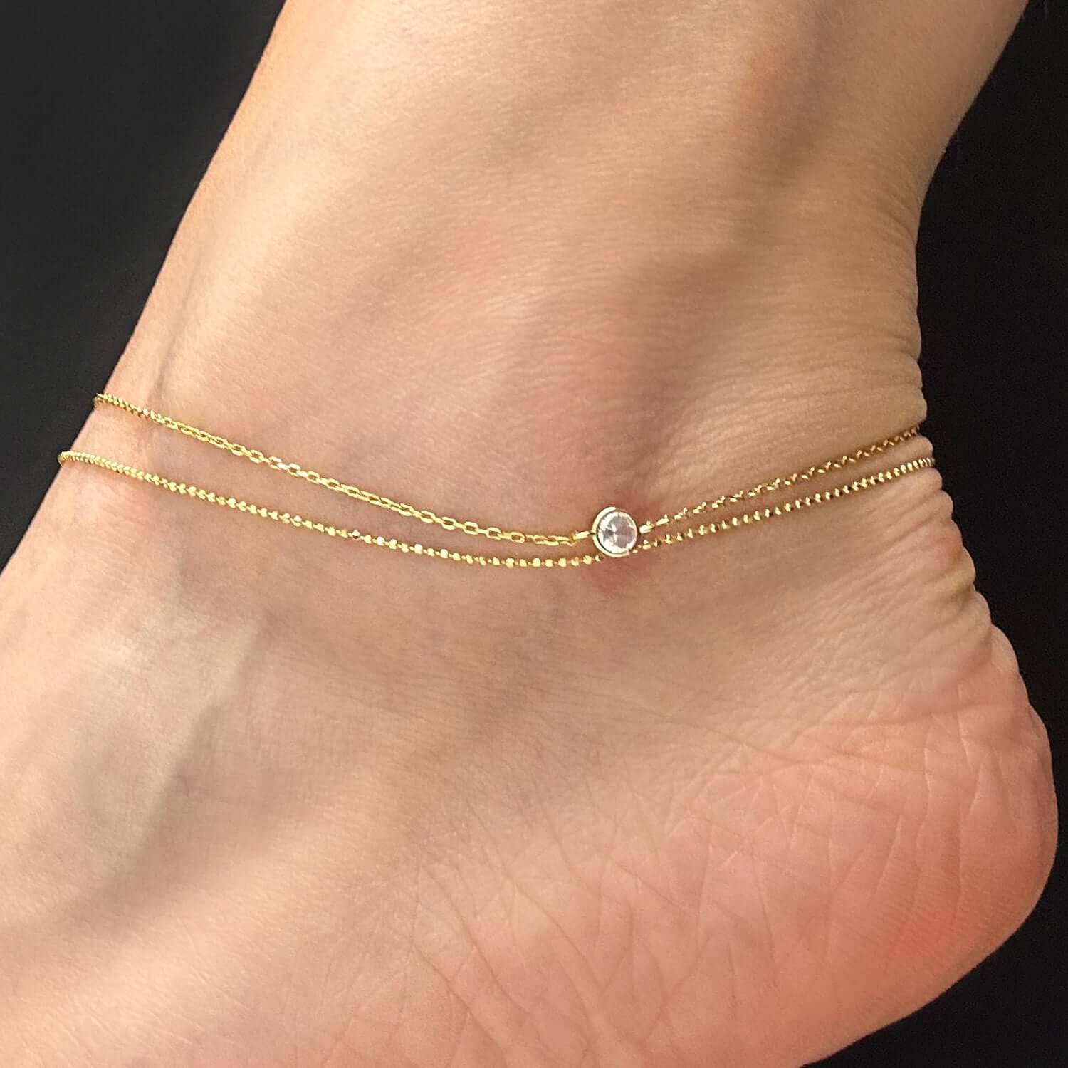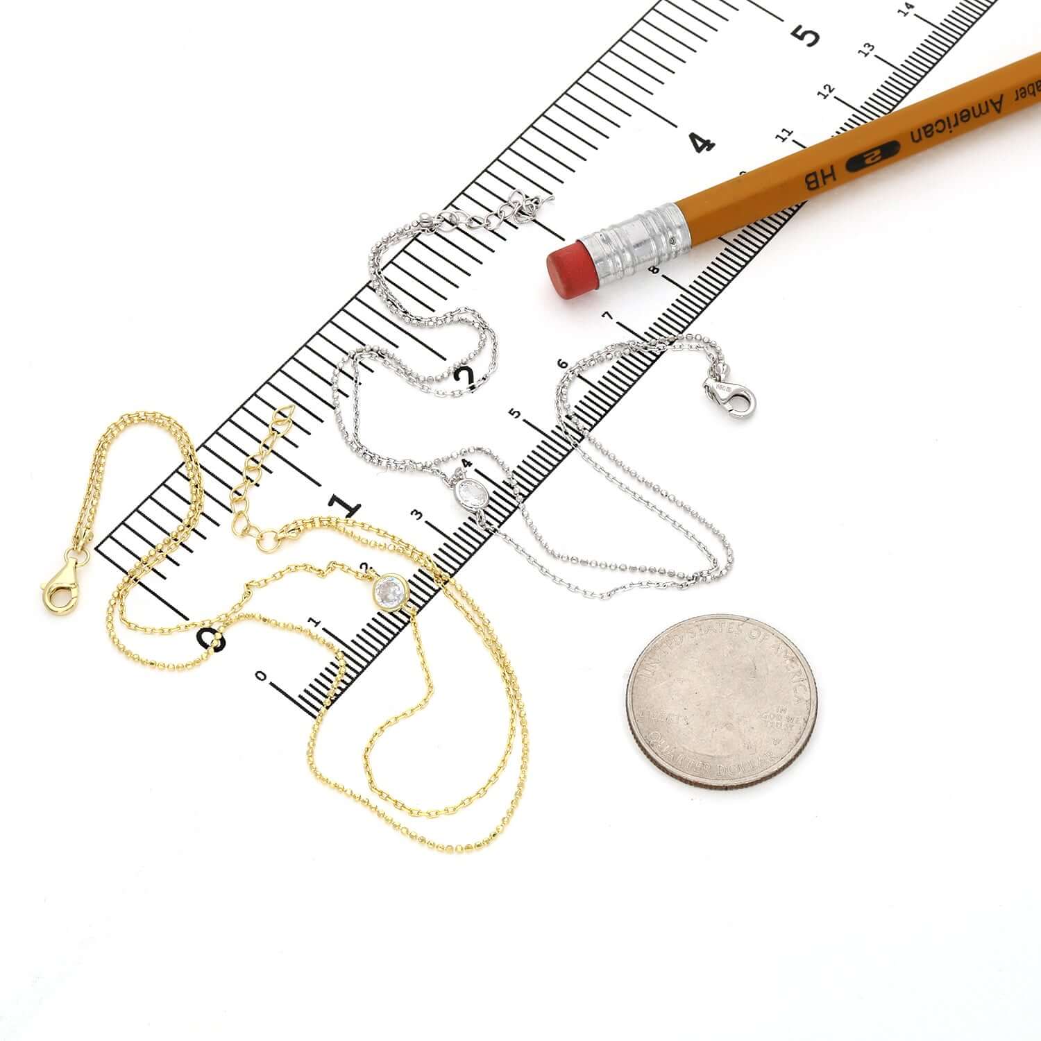 18K Yellow Gold Over Sterling Silver CZ Charm 1mm Double Link Adjustable Ankle Bracelet (Solid Links) 9"-10"Couldn't load pickup availability