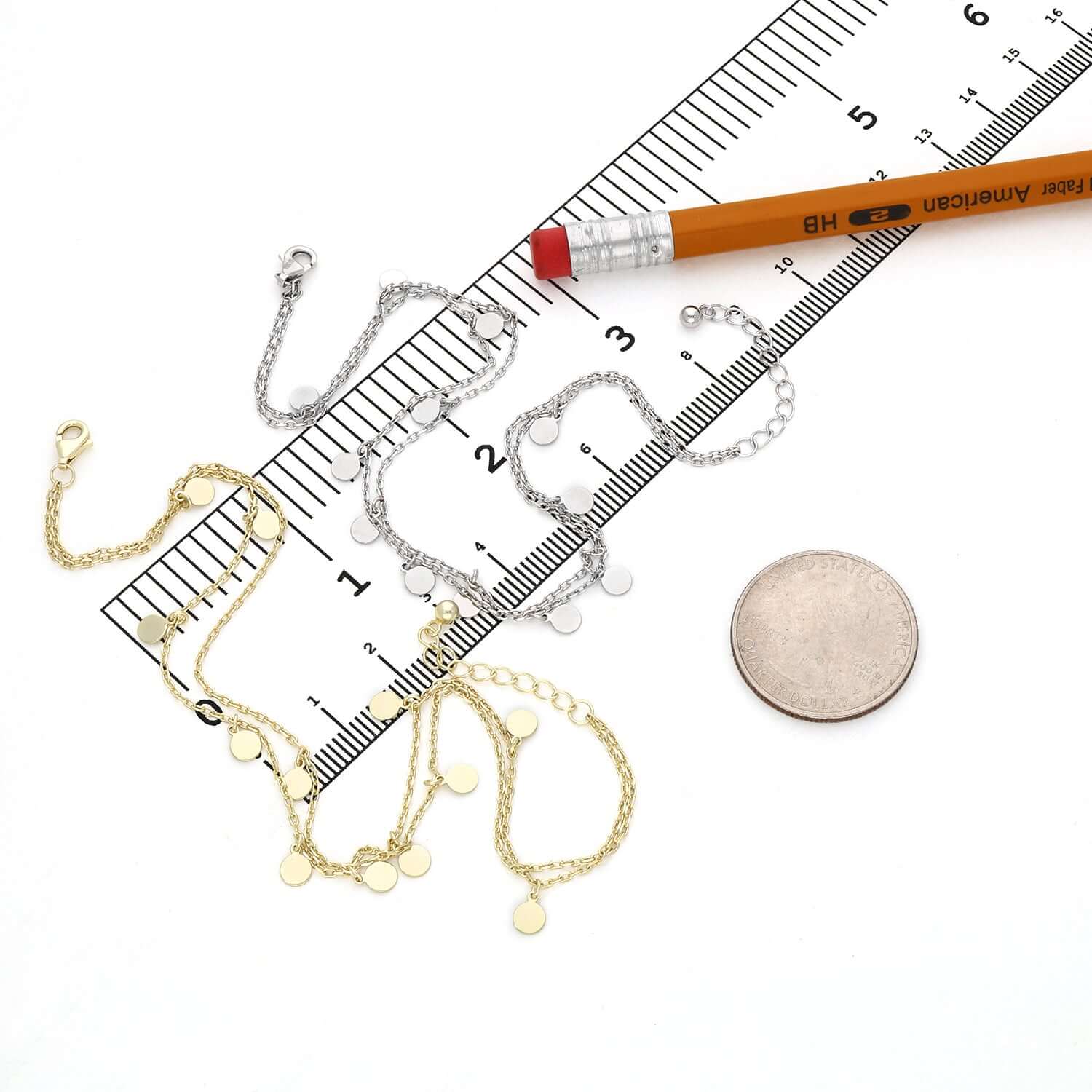 18K Yellow Gold Over Sterling Silver Disc Charm Double Link Adjustable Ankle Bracelet (Solid Links) 9"-10"Couldn't load pickup availability