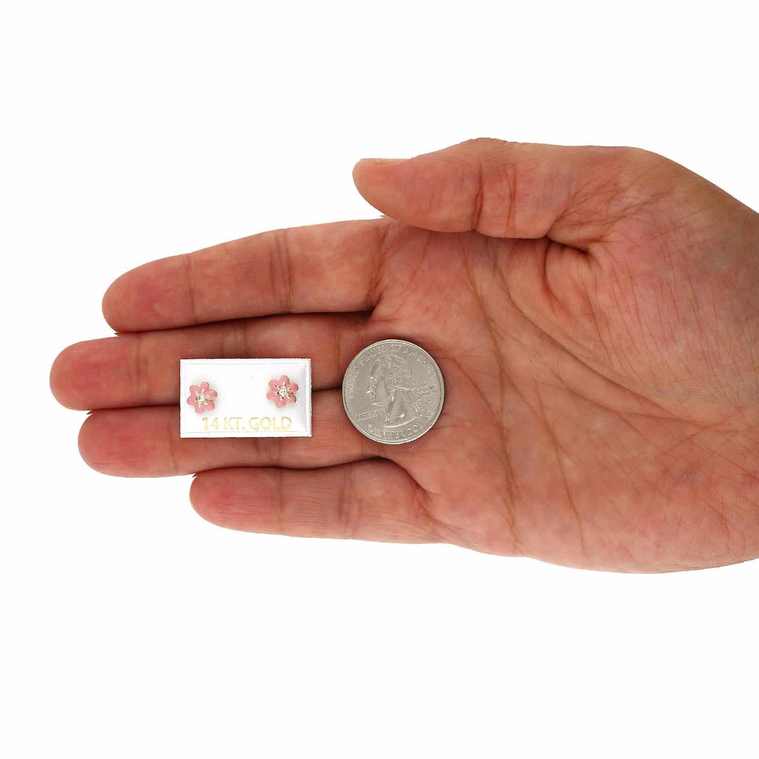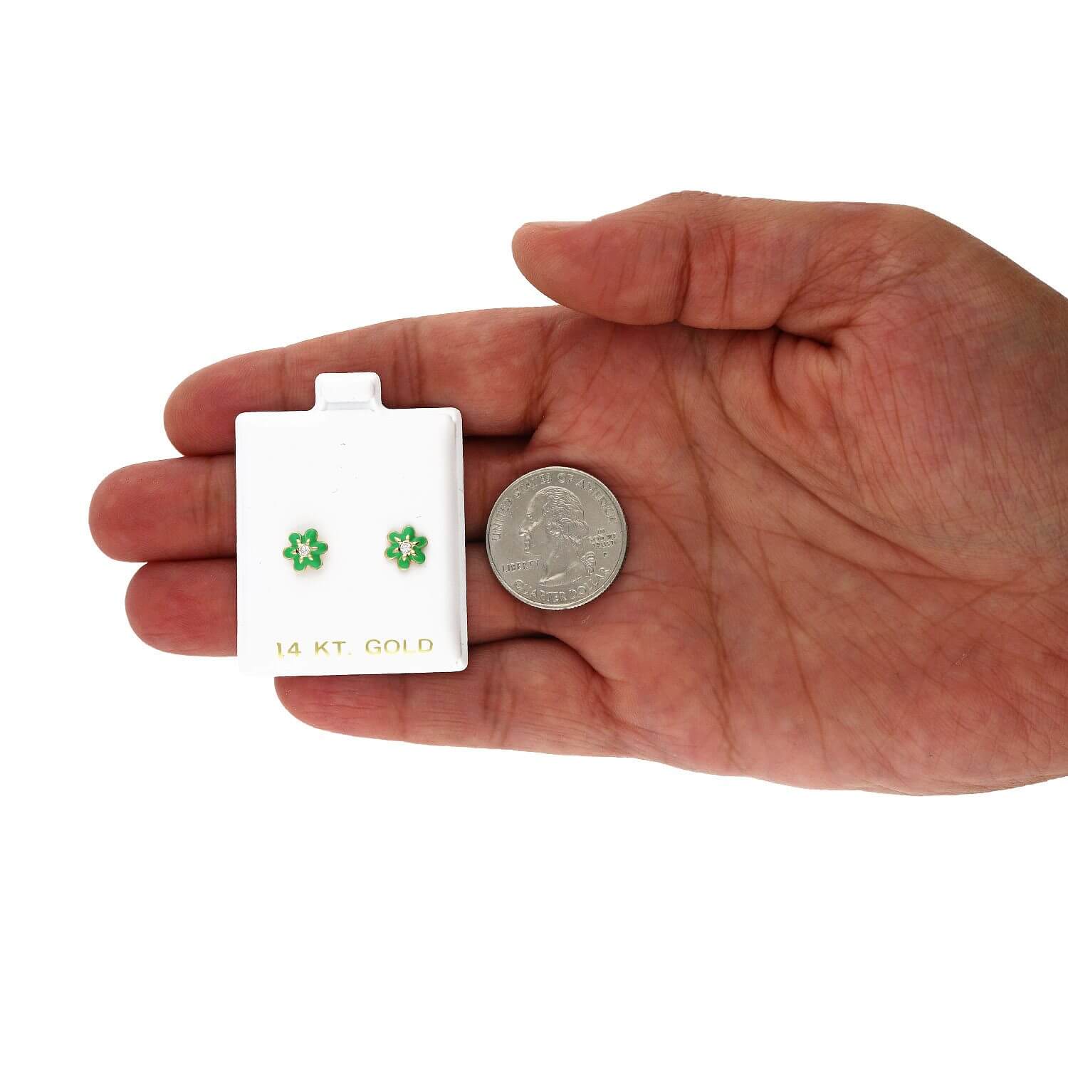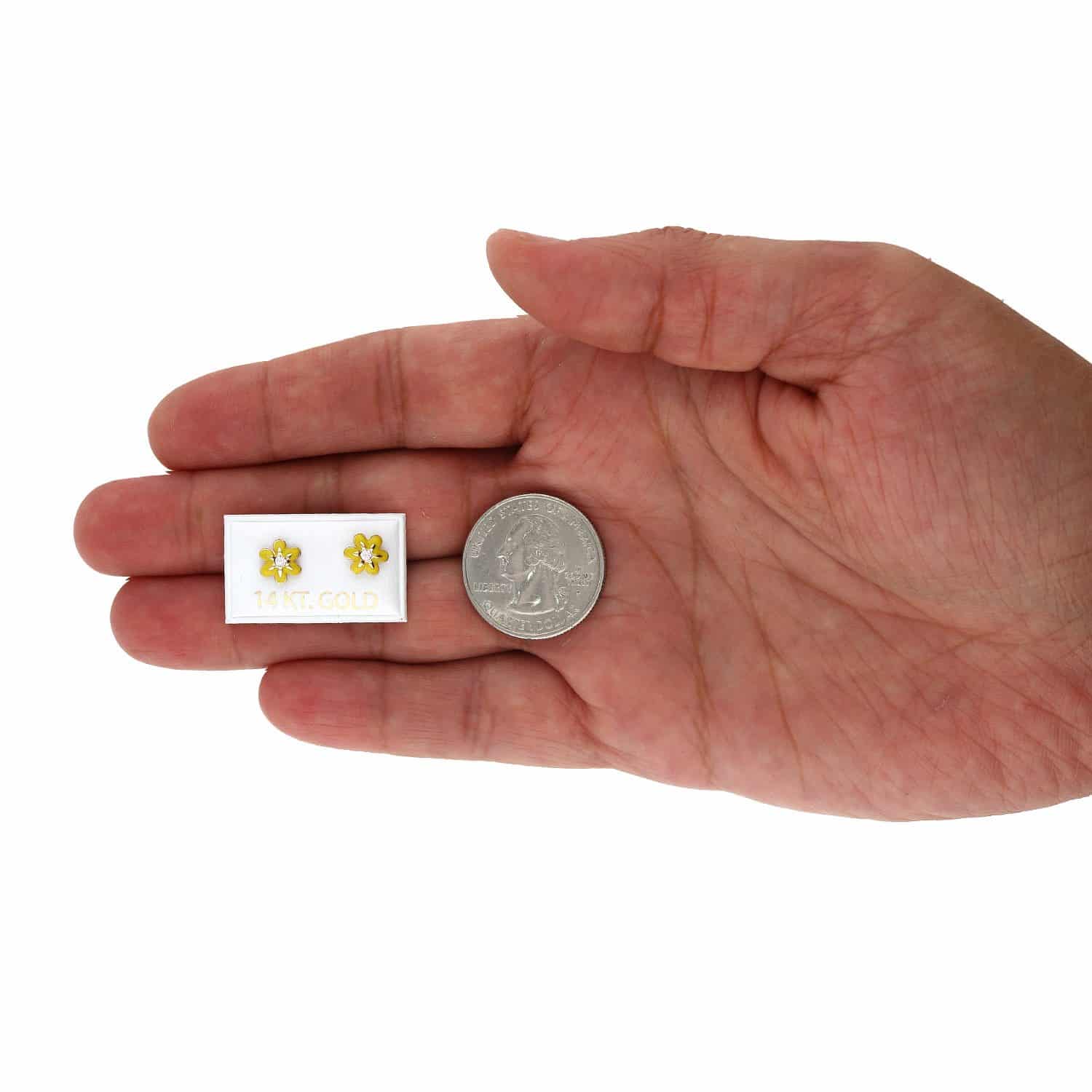 Read full return policyKids 14K Gold Enamel Flower CZ Screw Back Baby Stud Earrings 7mm
