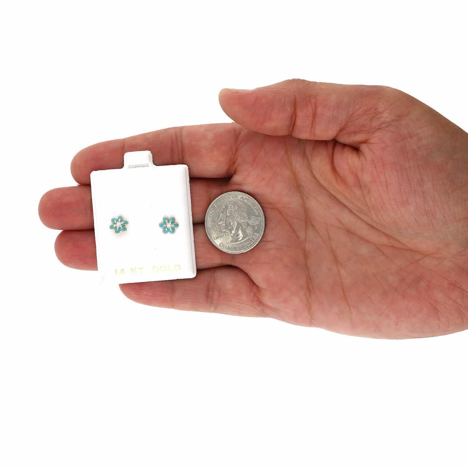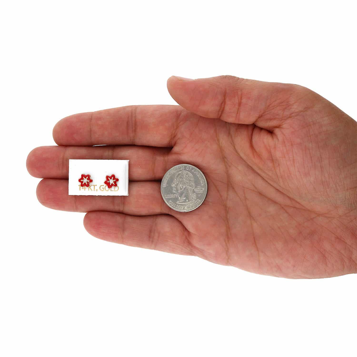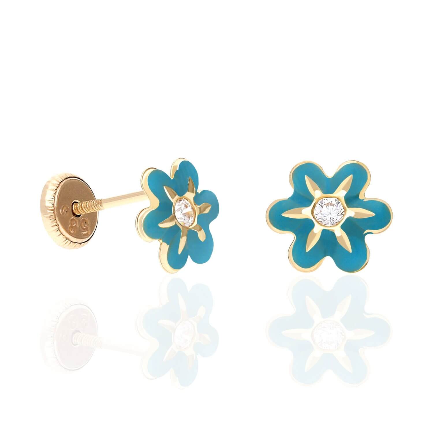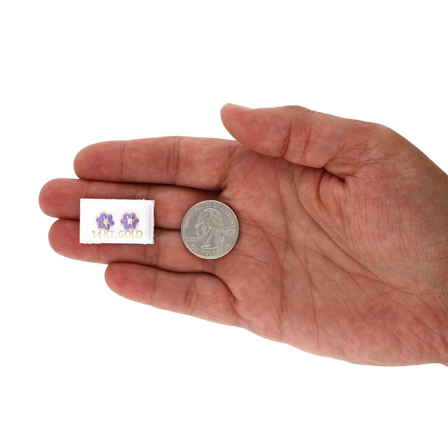 Read full return policyKids 14K Gold Enamel Flower CZ Screw Back Baby Stud Earrings 7mm