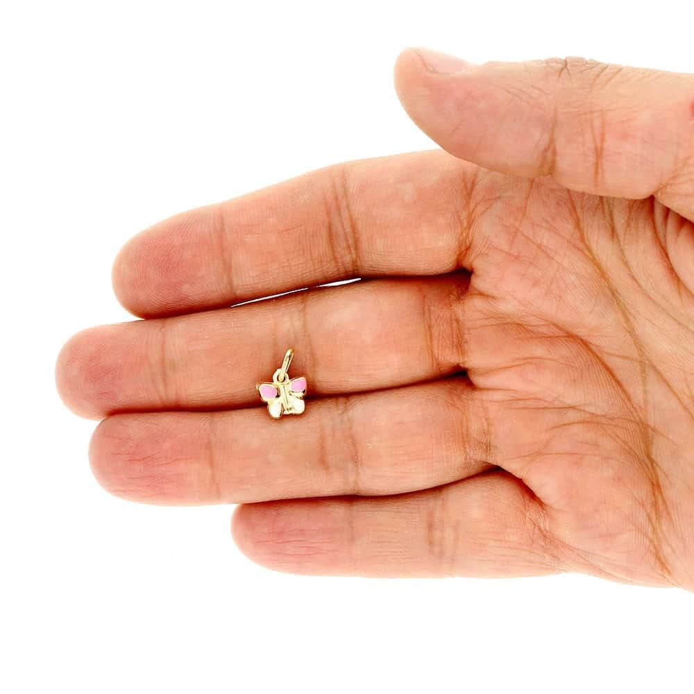 Kids 14K Yellow Gold Pink White Enamel Butterfly Pendant Cable Necklace 16" 18"Couldn't load pickup availability