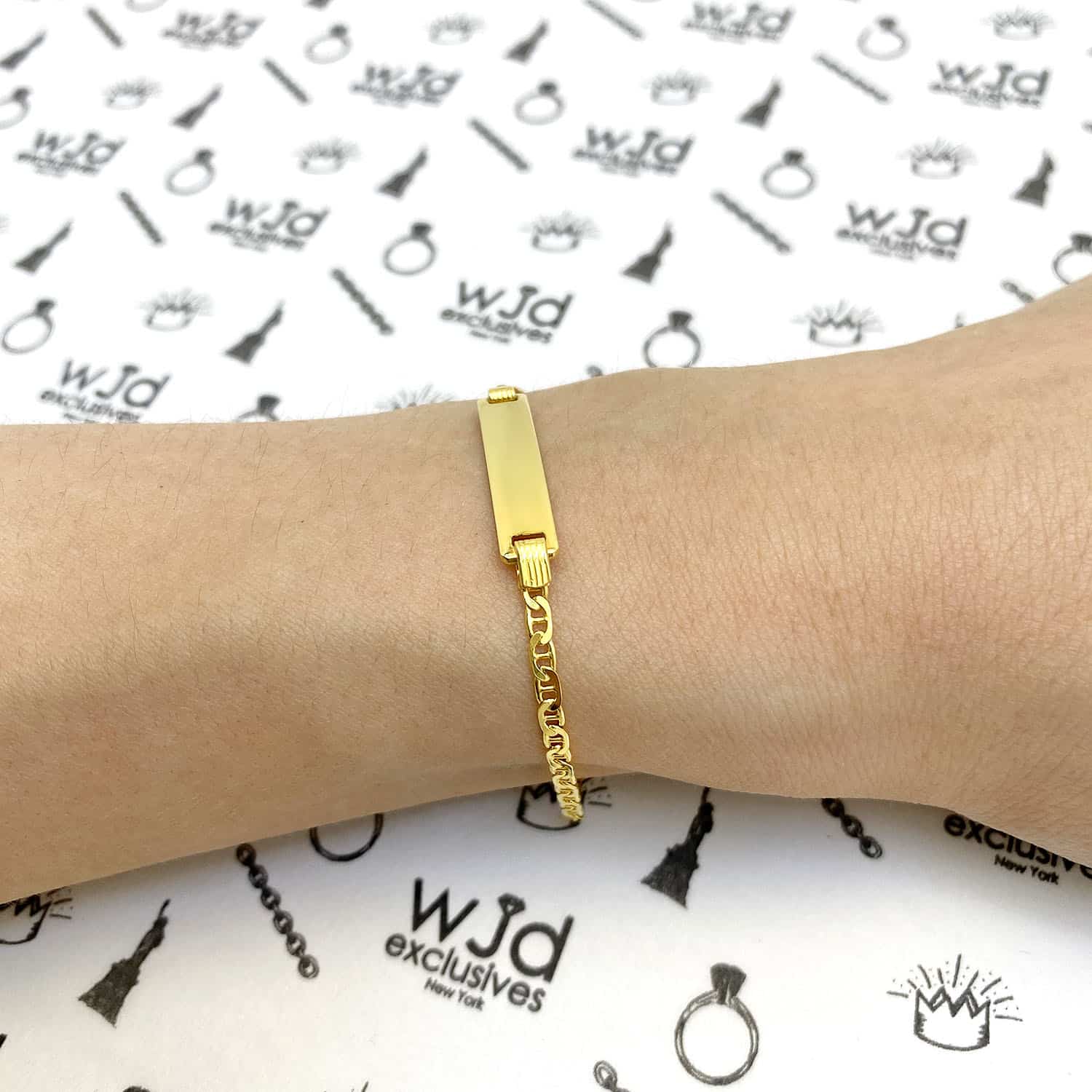 Read full return policyKids 14K Yellow White Gold Over Silver 2.5mm Anchor Mariner ID Bar Bracelet (Solid Links) 6"