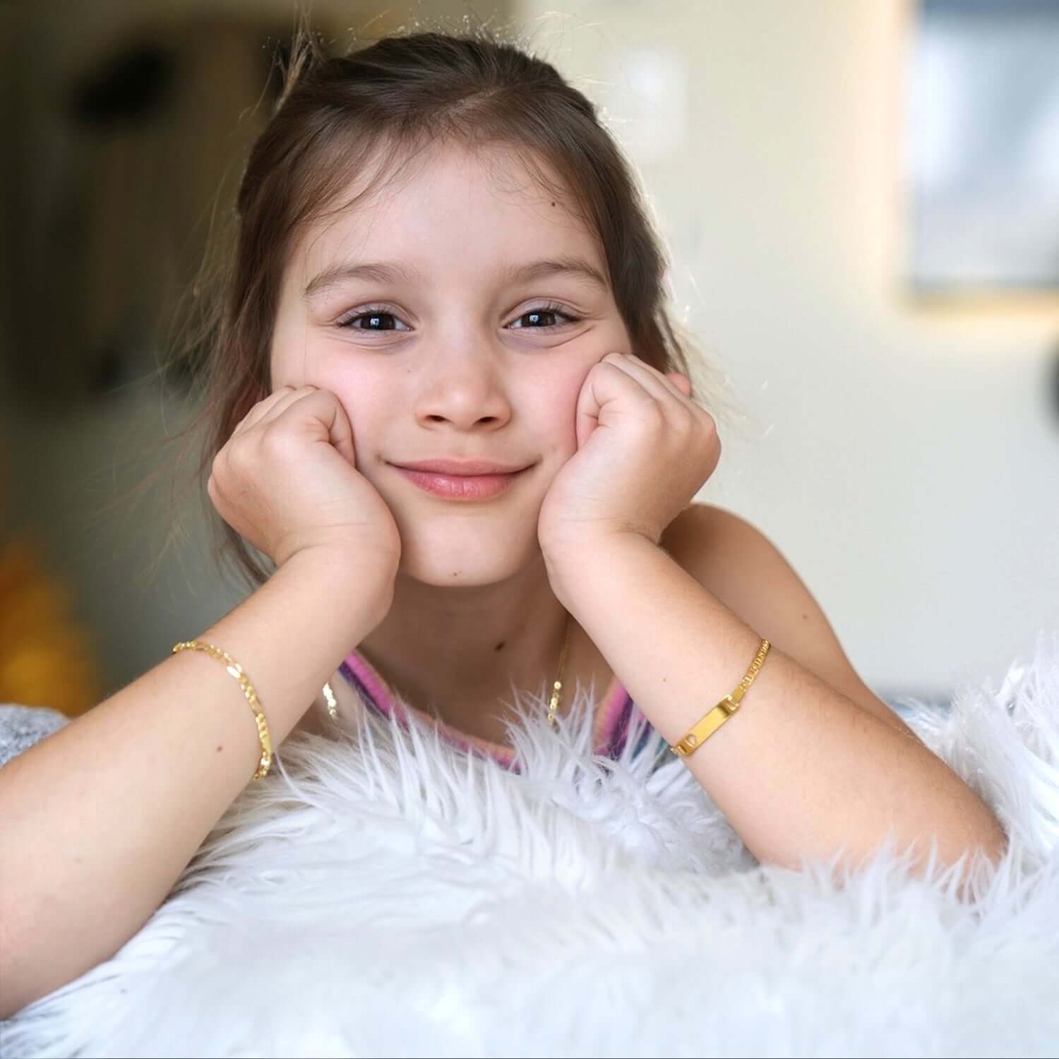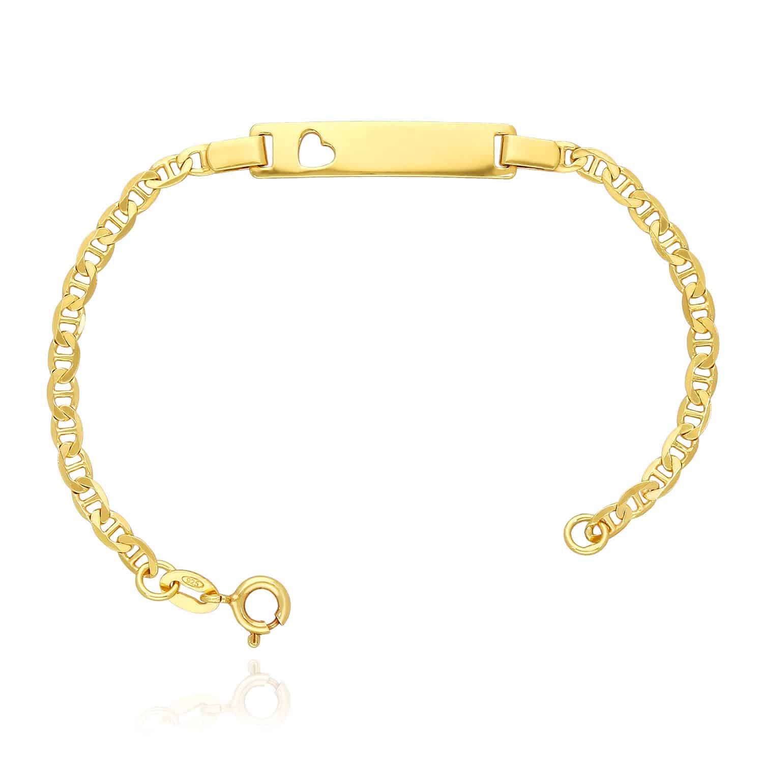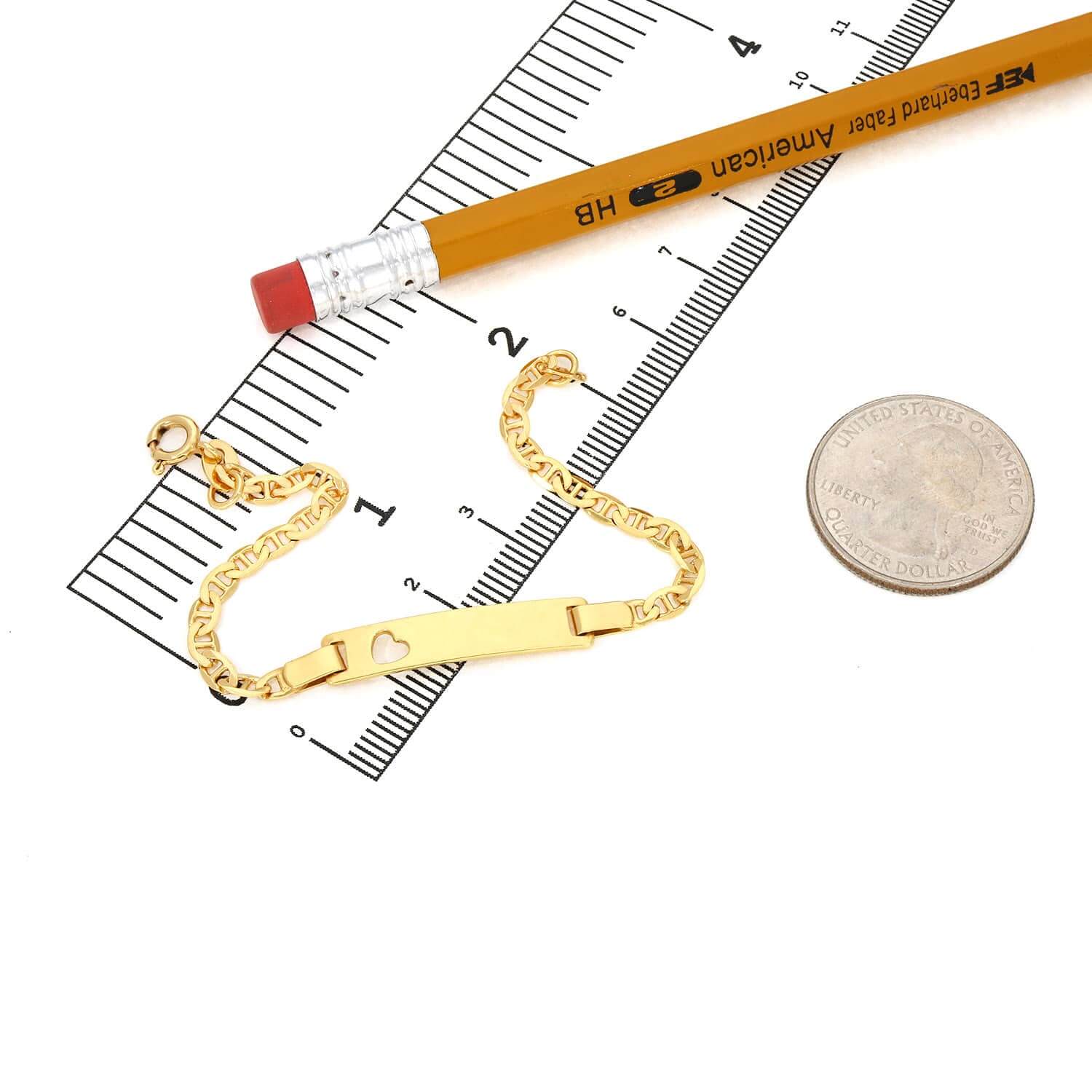 Read full return policyKids Yellow Gold Over Sterling Silver 3.5mm Anchor Mariner Heart Engravable ID Bar Bracelet (Solid Links) 6"