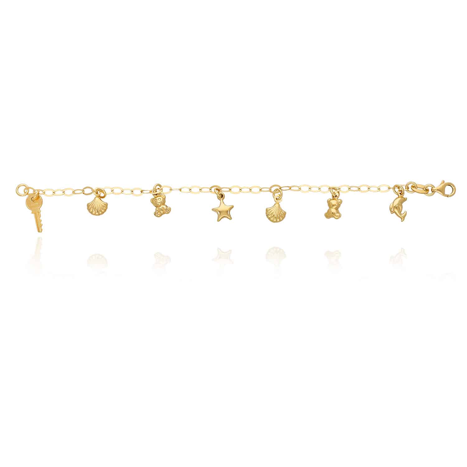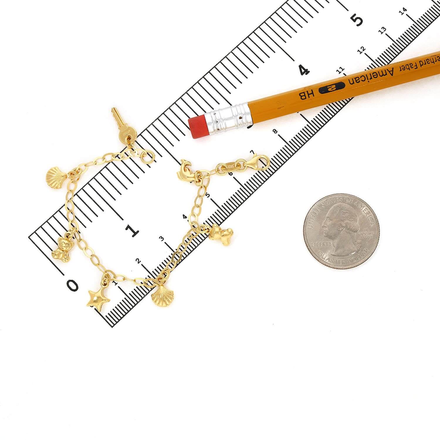 Read full return policyKids Yellow Gold Over Sterling Silver Dolphin Key Bear Star Seashell Bracelet (Solid Links) 6"